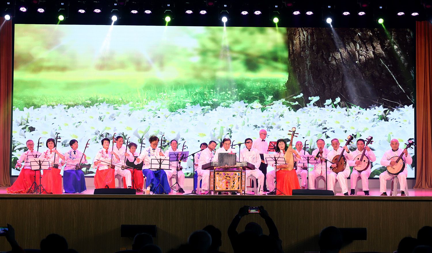 联欢会节目丰富、形式多样。大合唱《我和我的祖国》《中国中国鲜红的太阳永不落》旋律动人,饱含深情;诗朗诵《长江边的重阳祝福》表达了对广大老年朋友的深深祝福;戏曲联唱《绣红旗》、葫芦丝联奏《北京的金山上》《阿瓦人民唱新歌》、舞蹈《我爱你中国》表达了人民群众对党的无限热爱;凤阳花鼓《凤舞朝阳》、柔力球表演《复兴的力量》展现了老同志昂扬向上的精神面貌;旗袍秀《中国茶》、舞蹈《春风十万里》《烟雨唱扬州》、歌曲联唱《我们举杯》《乘着歌声的翅膀》《革命人永远是年轻》、器乐联奏《花儿与少年》《金蛇狂舞》歌颂了幸福美好的生活,表达对党的感恩情怀,展现老同志的美好青春与时代风采;大合唱《不忘初心》描绘了大气磅礴的建设画卷,将现场气氛推向高潮。