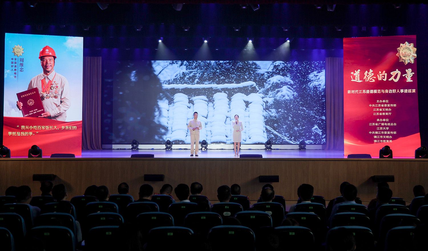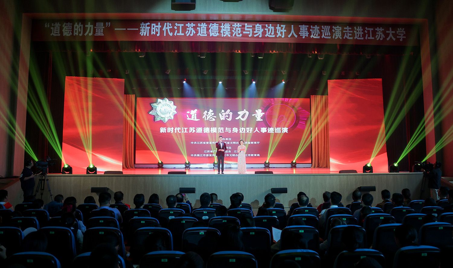 10月25日,由中共江苏省委宣传部、江苏省文明办、江苏省教育厅主办,江苏省广播电视总台、荣耀网页版、中共镇江市委宣传部、镇江市文明办、镇江市教育局承办的“道德的力量”——新时代江苏道德模范与身边好人事迹高校巡演走进我校。