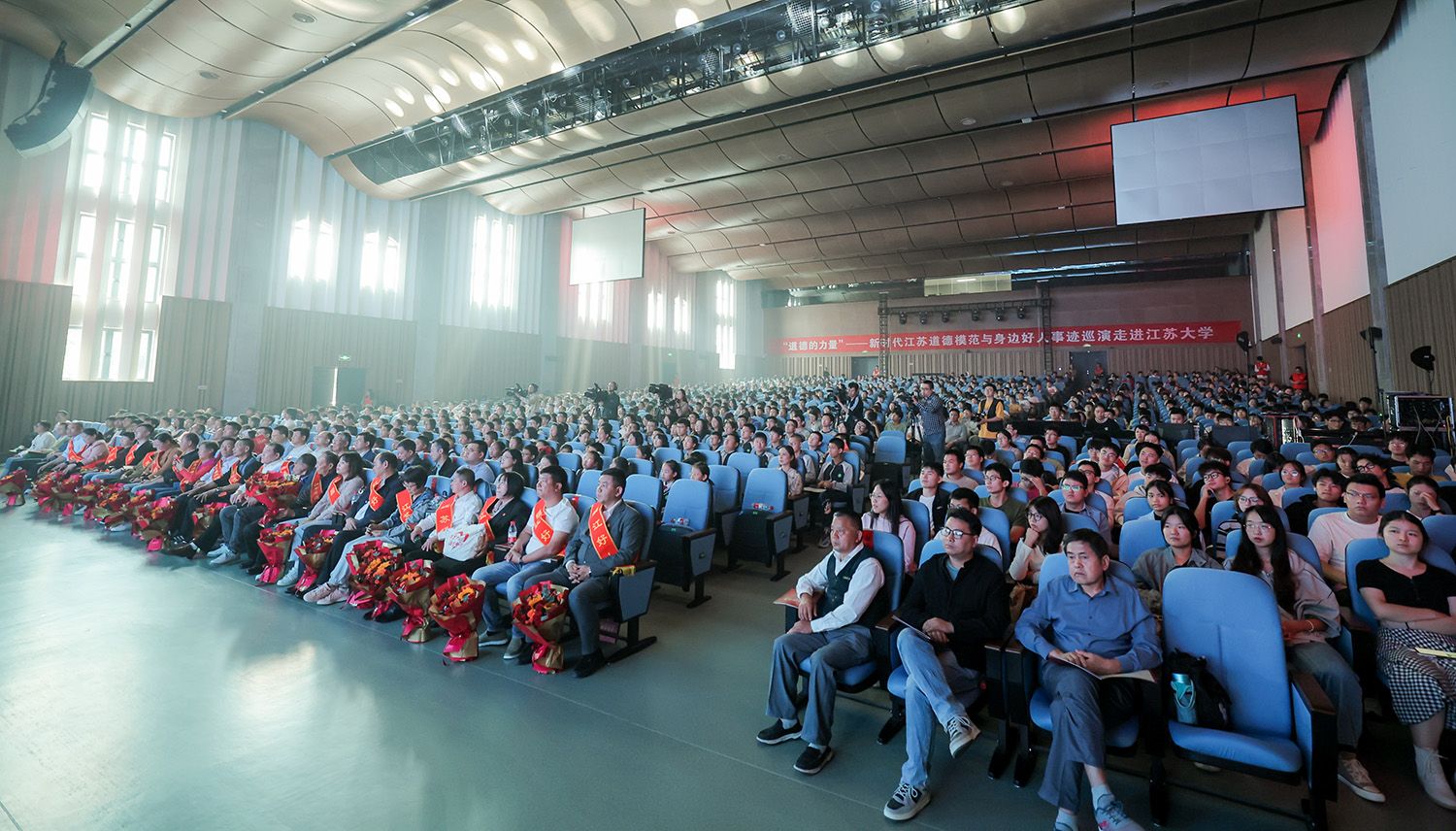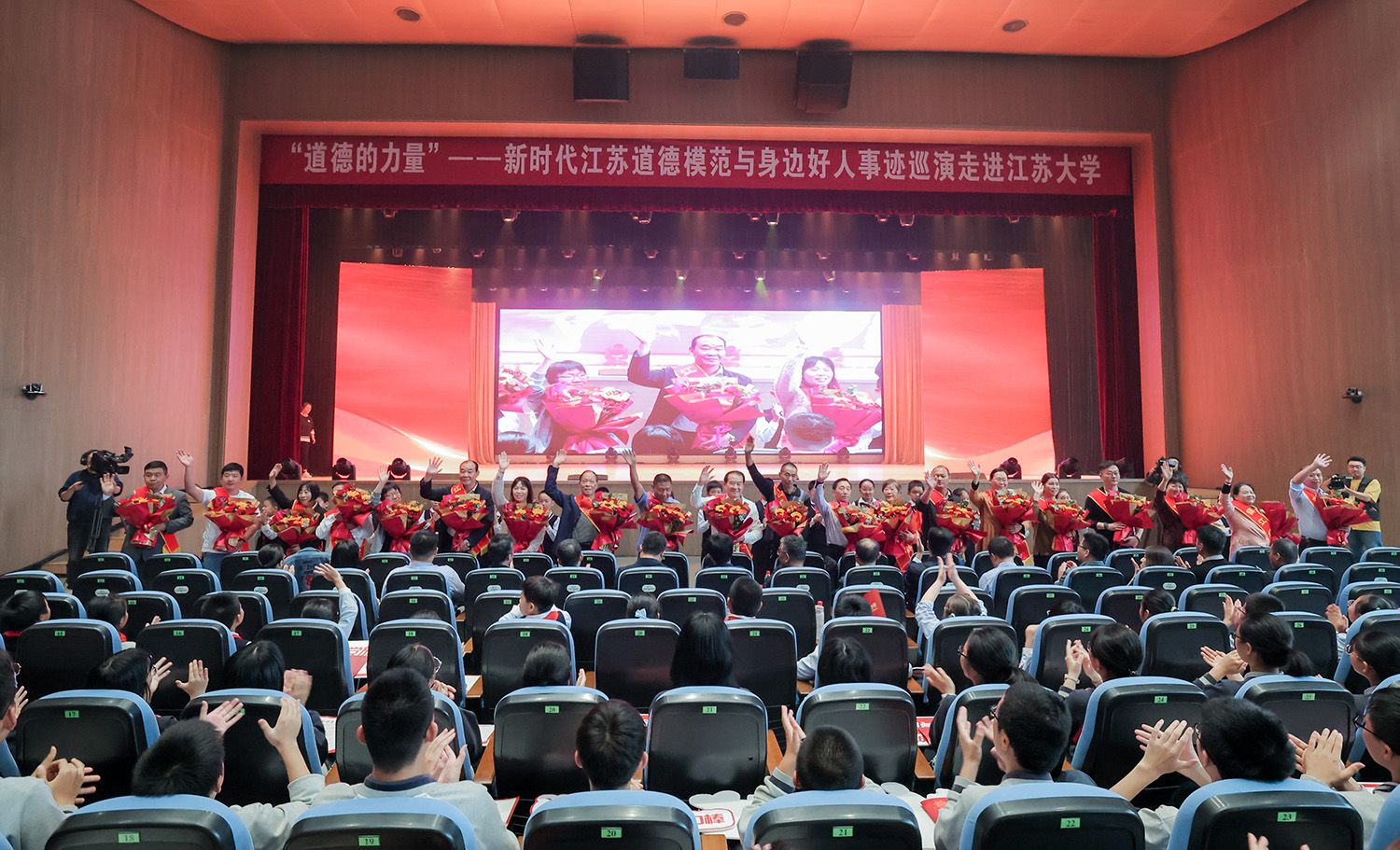 一个个感人的故事深深打动和激励着现场每一位师生,用道德的力量引领青年学子争做有理想、敢担当、能吃苦、肯奋斗的新时代好青年,为谱写“强富美高”新江苏现代化建设新篇章贡献青春力量。