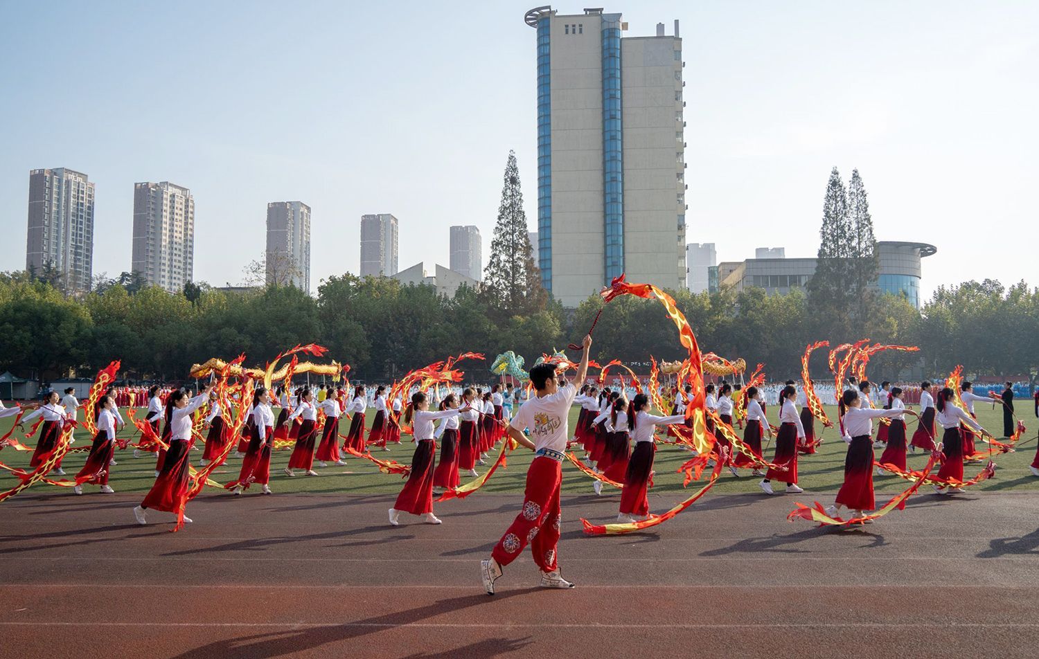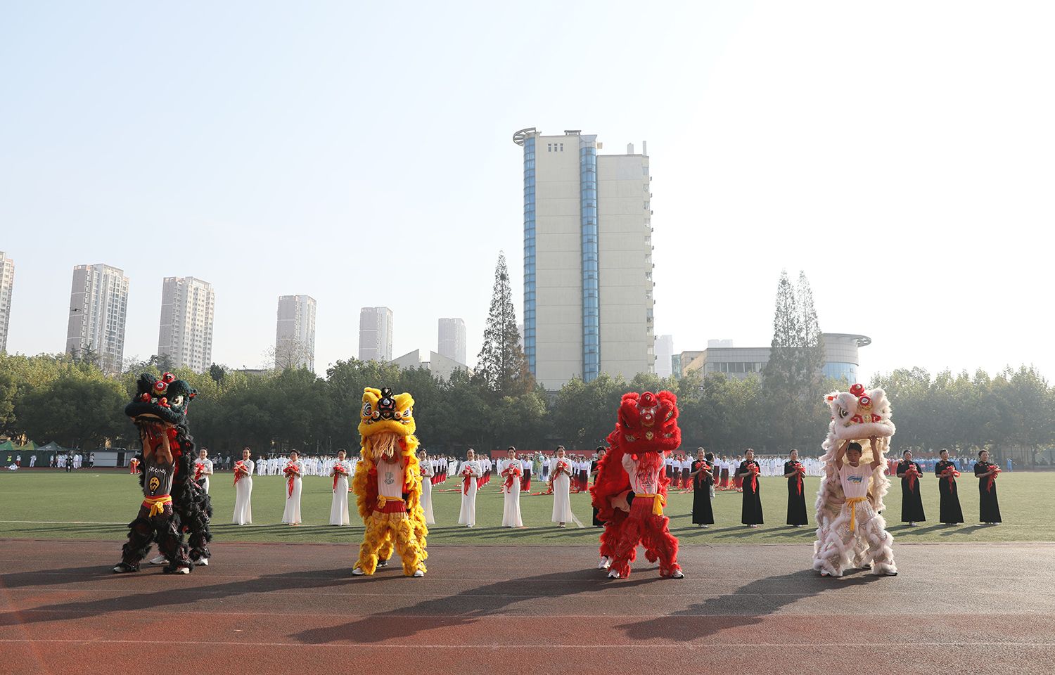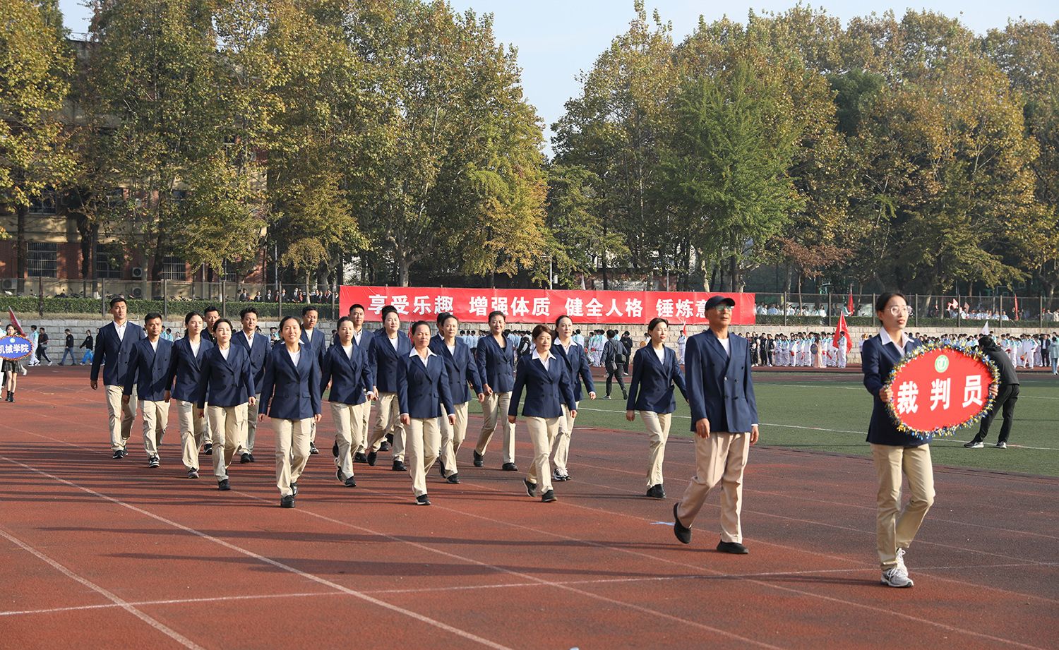 张济建宣布荣耀网页版第二十二届运动会开幕。开幕式上,学生进行了舞龙舞狮、排舞表演,教职工进行了太极扇等表演。