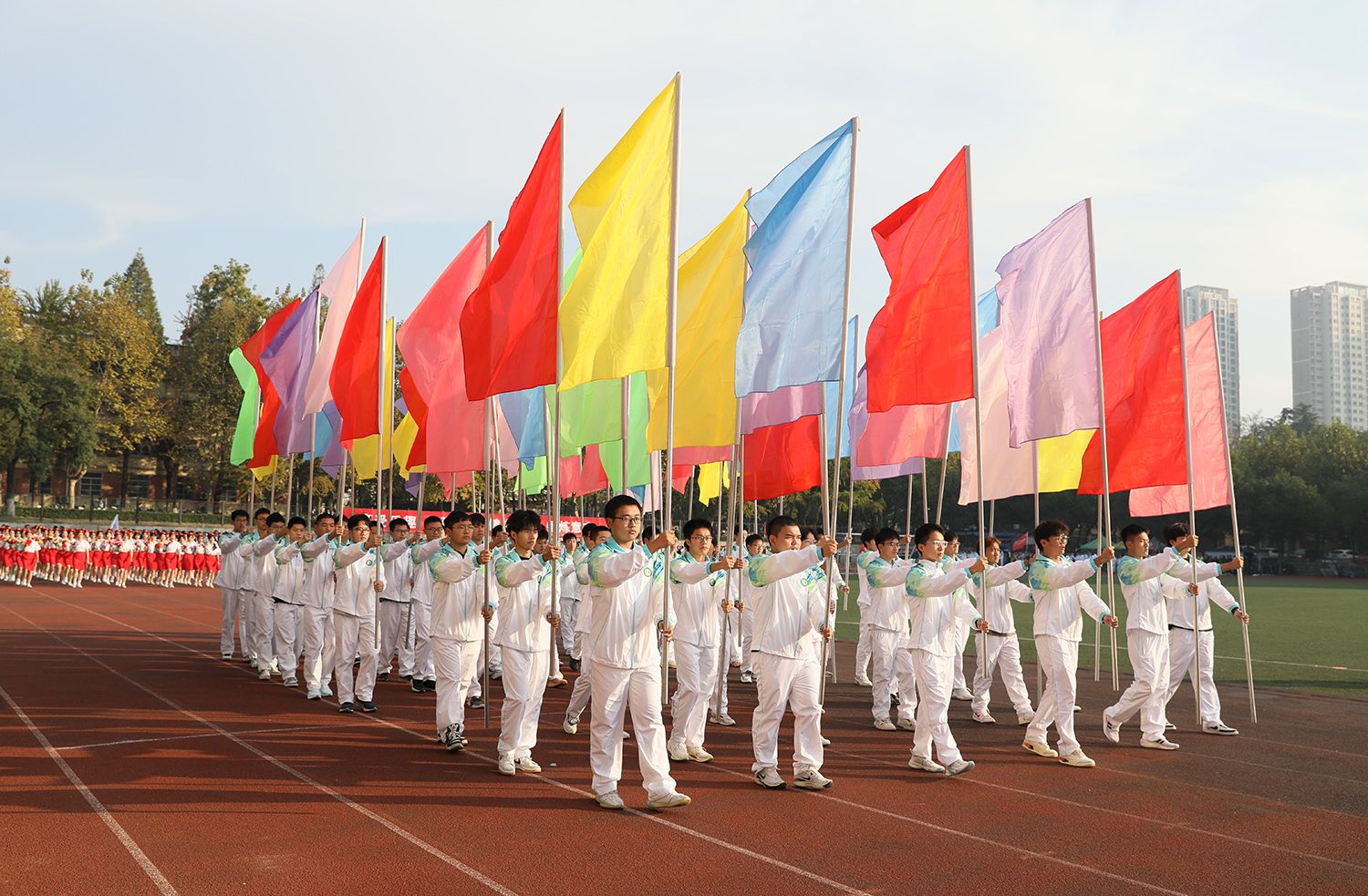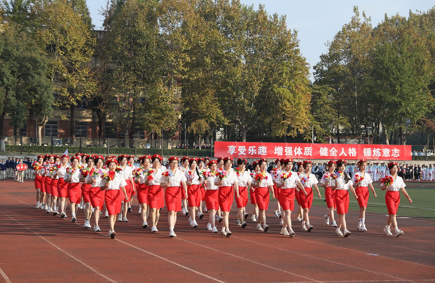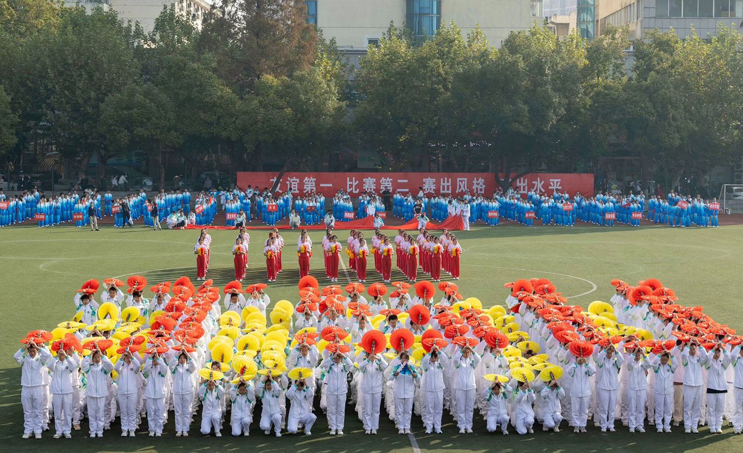 张济建宣布荣耀网页版第二十二届运动会开幕。开幕式上,学生进行了舞龙舞狮、排舞表演,教职工进行了太极扇等表演。