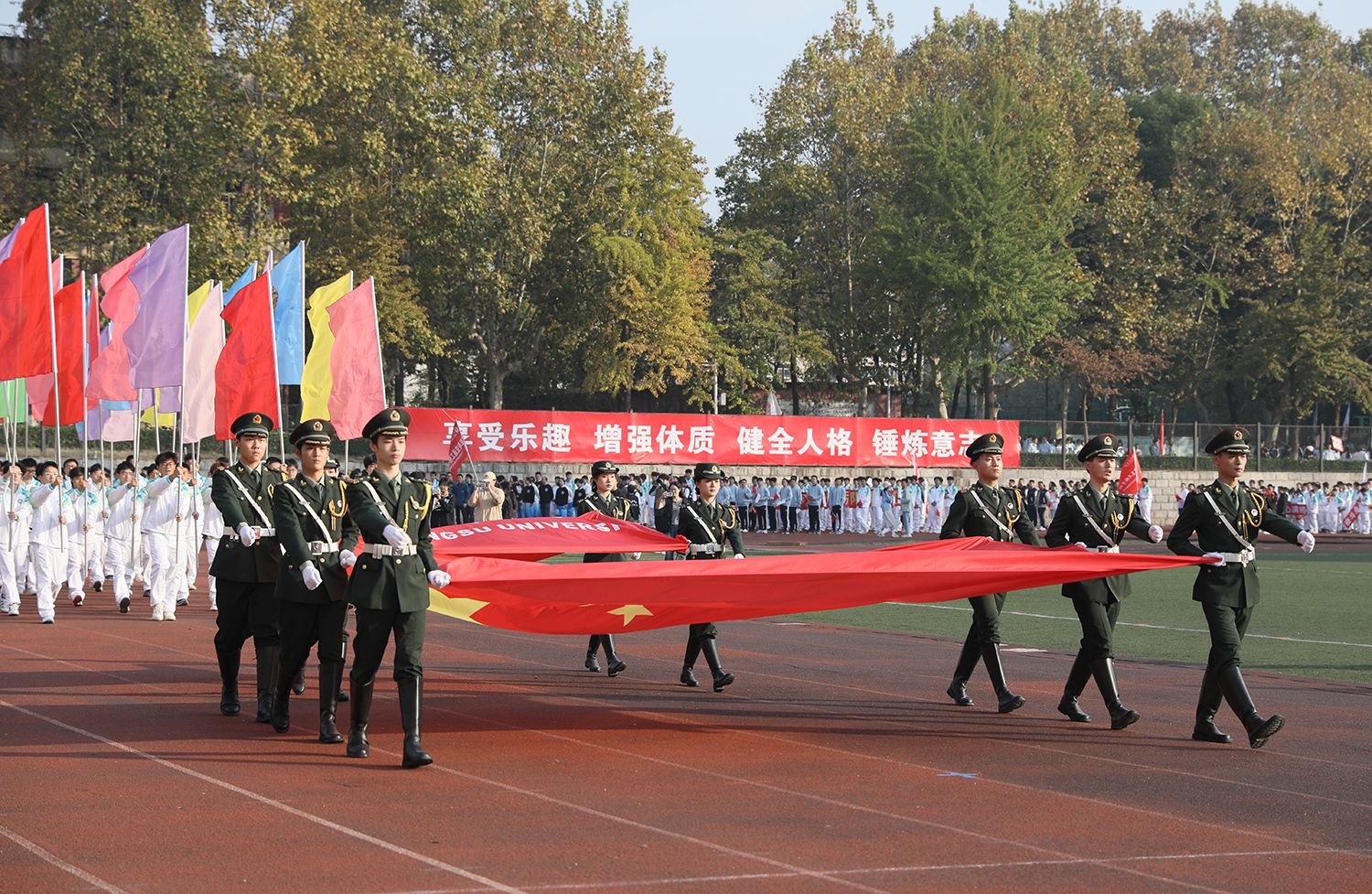 11月3日,荣耀网页版第二十二届运动会在学校东山体育场开幕。在校校领导、党委常委,各学院、相关职能部门负责人,各单位师生运动员等参加开幕式。