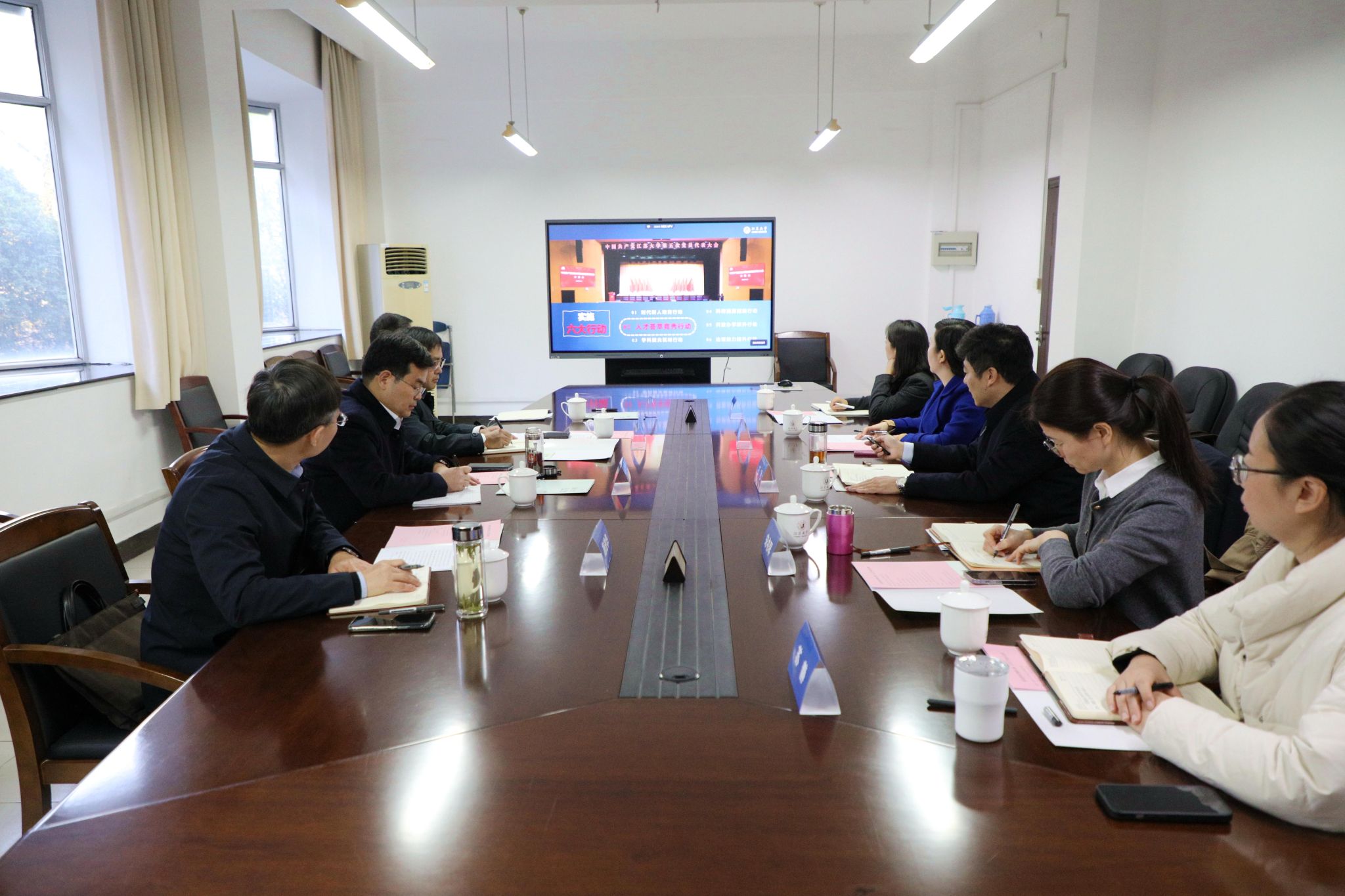 会上,人事处处长、党委教师工作部部长王飞以“深化人事体制机制改革工作”为题,重点从近五年工作成效及存在问题、贯彻落实校第五次党代会精神重点任务等两个方面作详细汇报。人才工作办公室主任、党委人才工作部部长黄婷以“深入实施人才荟萃竞秀行动”为题,重点从人才工作背景及目标、人才现状及问题分析、改革举措及重点工作等方面作详细汇报。