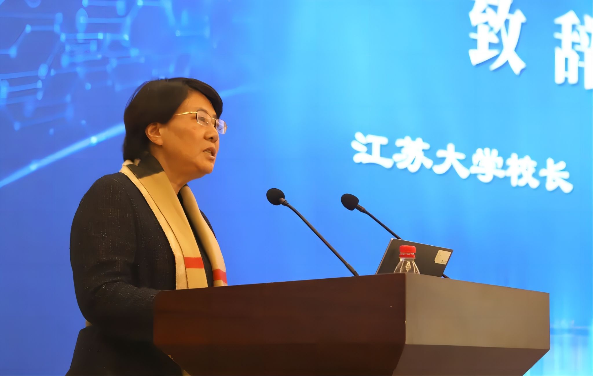 校长邢卫红在集成电路学院成立仪式上致欢迎辞,代表学校对各位领导、专家的到来表示欢迎,对集成电路学院的成立表示祝贺,对各合作共建单位表示感谢。