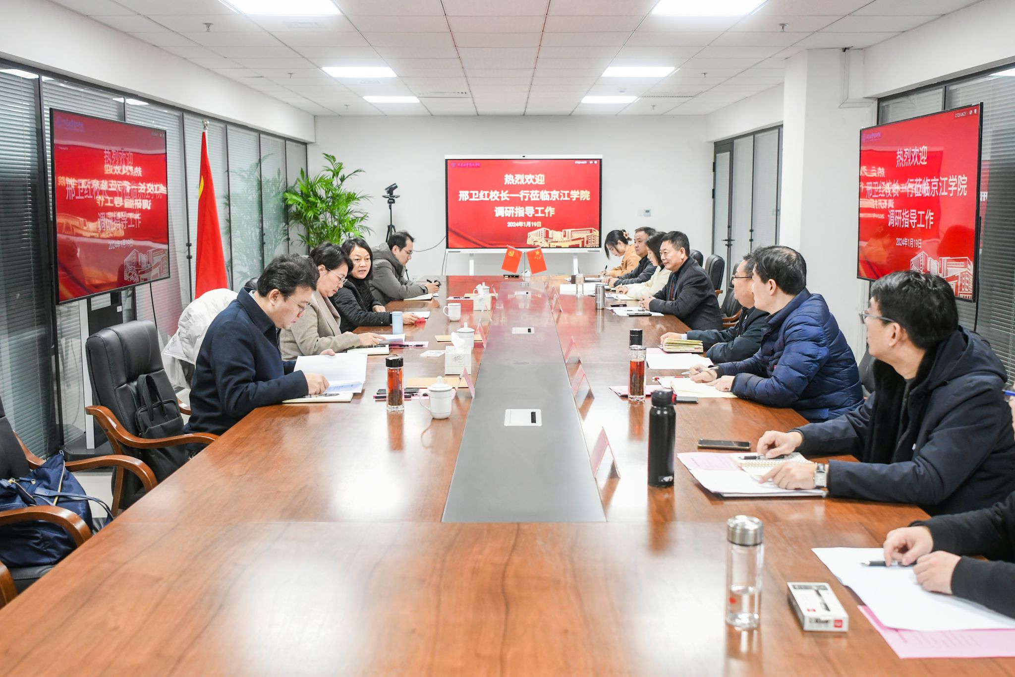1月19日上午,校长邢卫红、副校长陈红一行赴京江学院调研,京江学院领导班子全体成员参加座谈会。