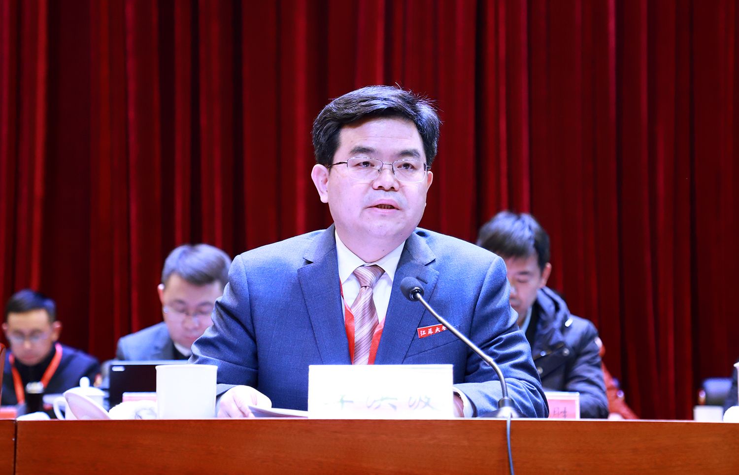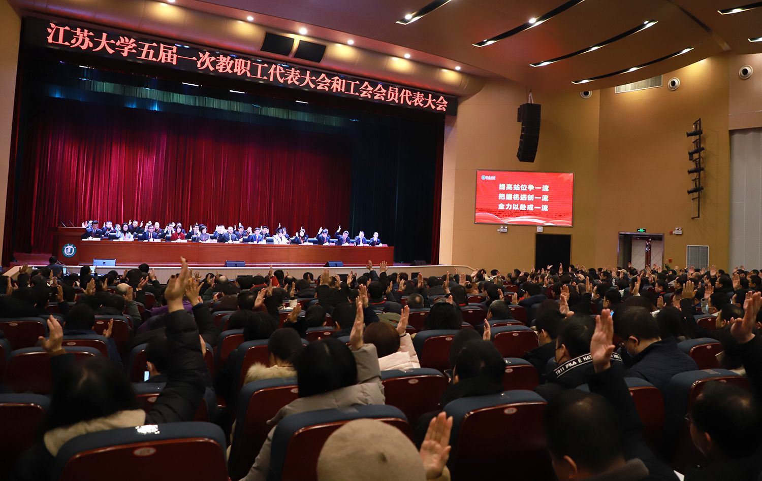 江苏省教育科技工会副主席崔文华,镇江市政协党组副书记、副主席、市总工会主席高国成,镇江市总工会党组成员、副主席李学雄,镇江市教育工会主席、四级调研员黄勇,镇江市总工会基层工作部部长陈玉松,江苏省教育科技工会办公室二级主任科员常龙尉,我校全体校领导、全体正式代表出席大会。四届一次“两代会”以来退任的校级领导,离退休党工委委员、离退休党支部书记,非正式代表的中层干部、区级以上人大代表和政协委员、校各民主党派主要负责人、各单位学术委员会主任、二级工会主席应邀出席大会。