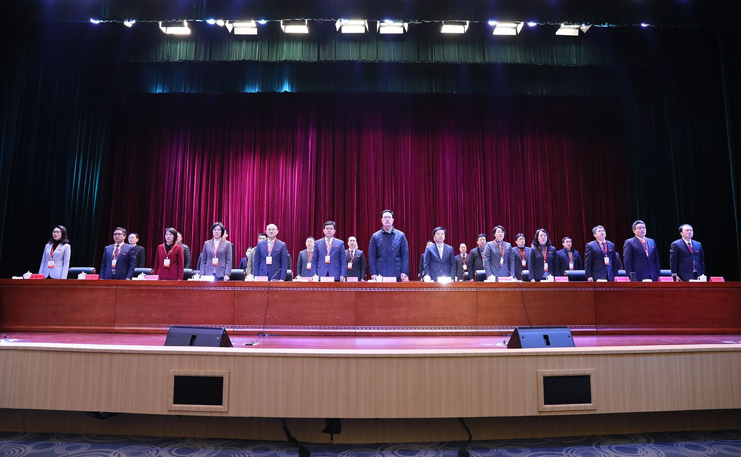 全体起立,奏唱国歌。