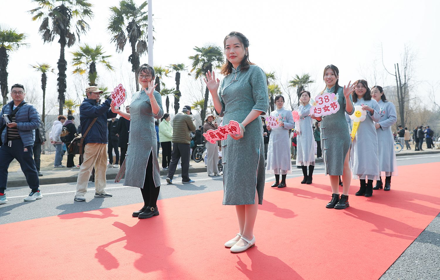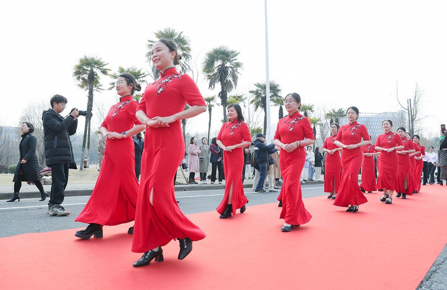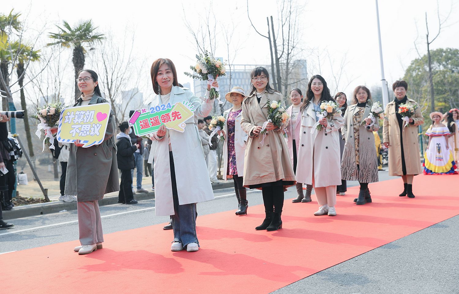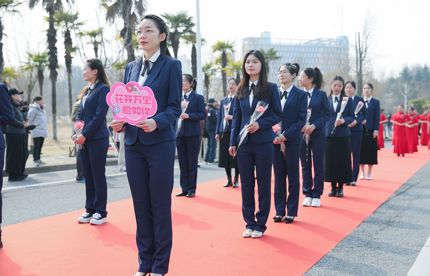 随后,各支队伍依次踏上红毯展示风采,并与领导合影留念。