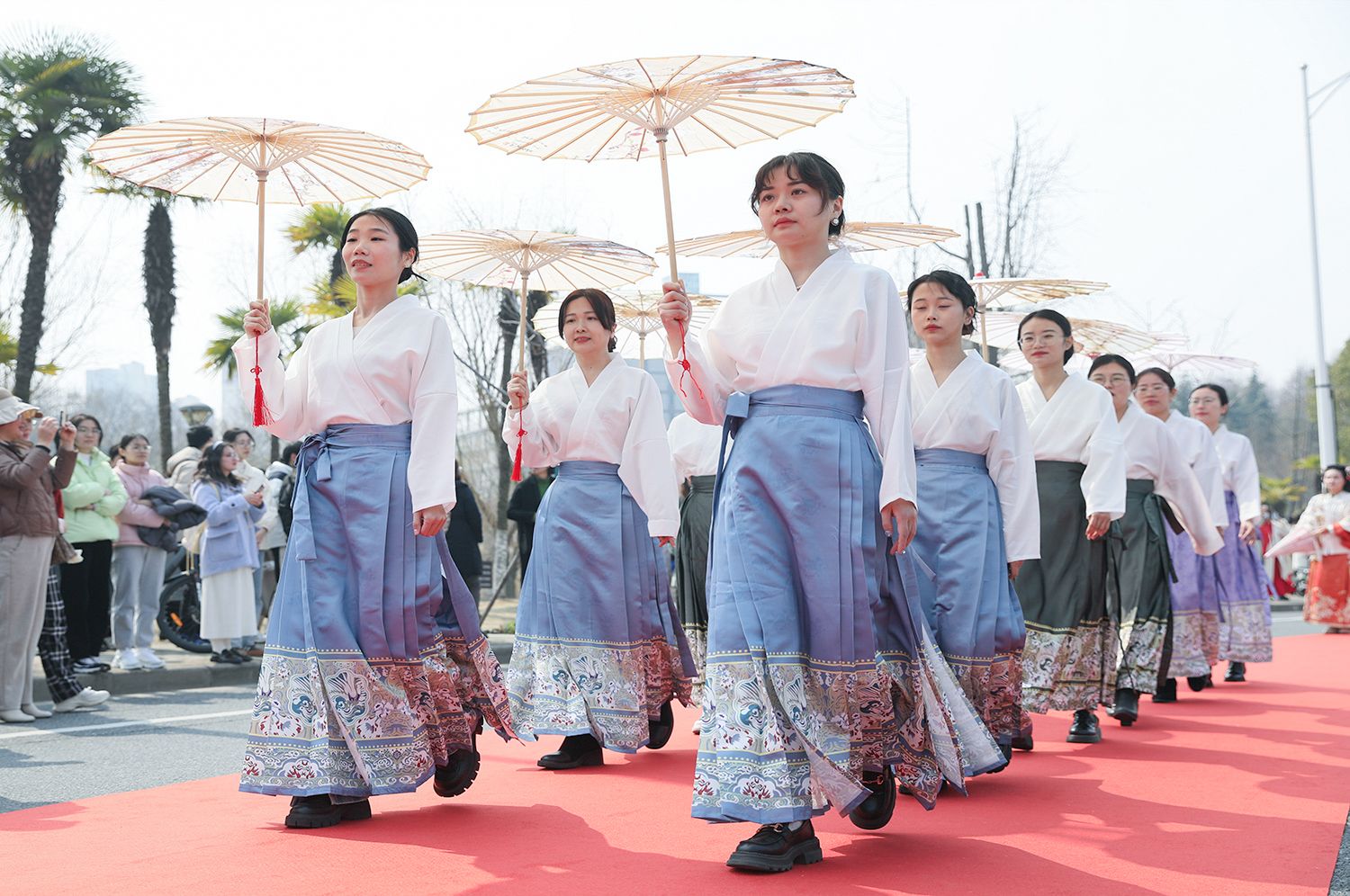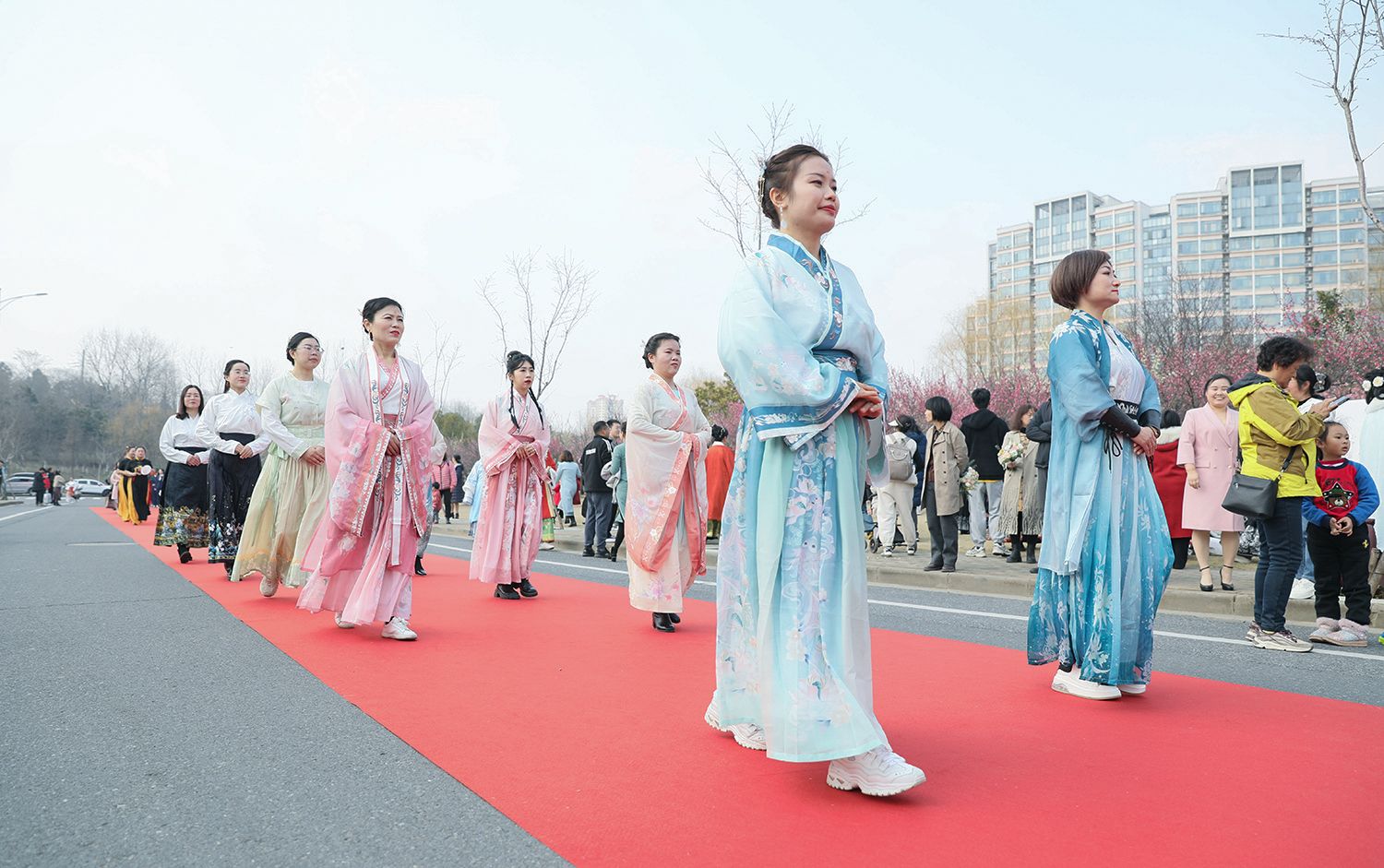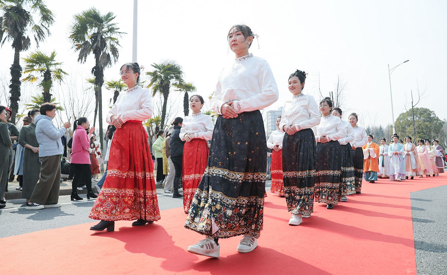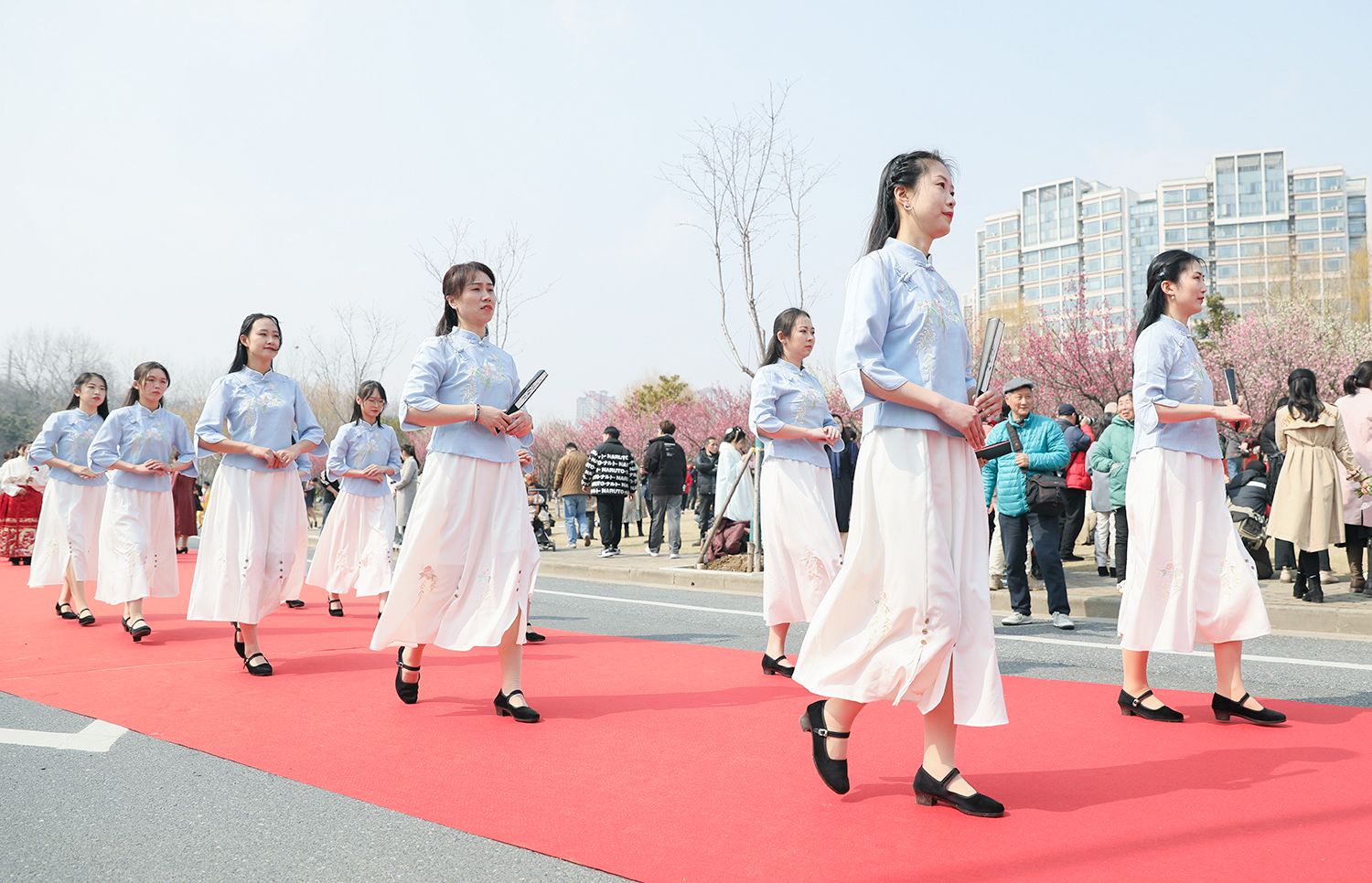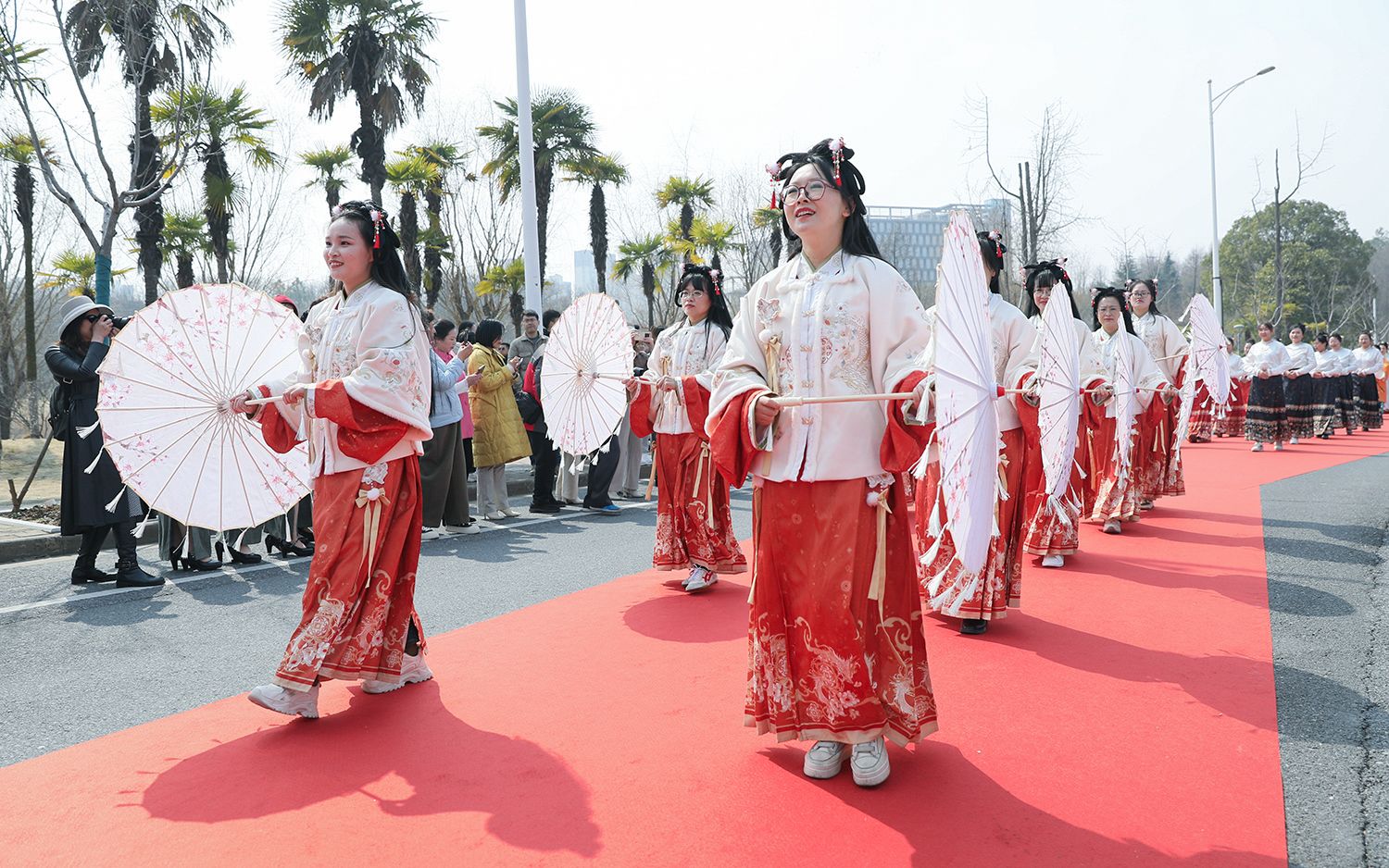 随后,各支队伍依次踏上红毯展示风采,并与领导合影留念。