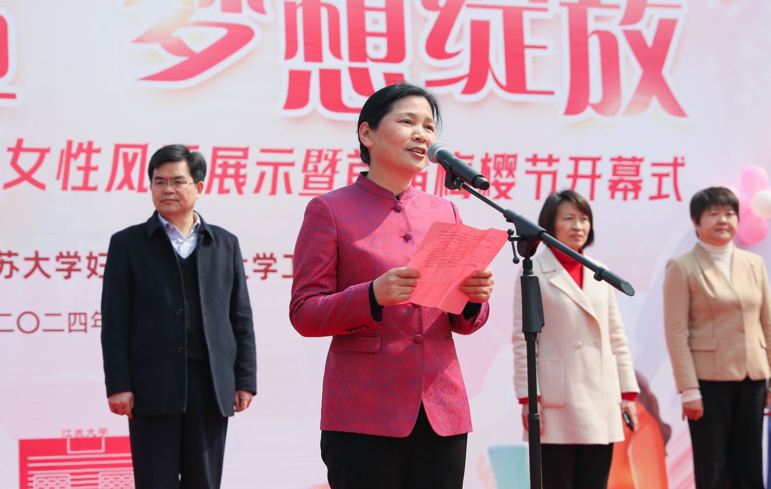 校党委书记李洪波,镇江市妇联党组书记、主席杨菊兰,副校长李红,校党委常委、纪委书记、派驻监察专员蒋彩霞,副校长任旭东,以及市妇联、校工会、妇联有关领导等出席活动。