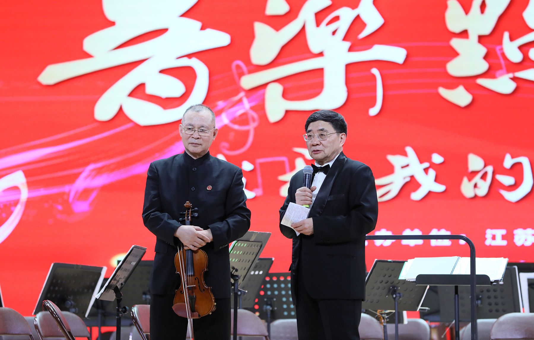 3月30日晚,满天星业余交响乐团应邀走进我校,在学校大礼堂举办“音乐点亮人生 我和我的祖国”专场音乐沙龙,为全校师生带来了一场高雅艺术视听盛宴。校党委书记李洪波、镇江市副市长武鸣会见了乐团主要成员。校长邢卫红,校党委副书记张济建,校党委常委、宣传部部长、统战部部长吴麟麟,以及现场师生1400 余人共同聆听经典名曲,感受高雅艺术魅力。