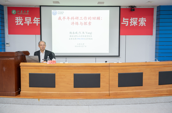 5月27日,中国工程院院士、奥地利科学院院士、欧洲科学与艺术学院院士、重庆大学土木学院荣誉院长杨永斌教授受邀来校讲学,作题为《我早年科研工作的回顾:淬炼与探索》学术讲座。讲座由副校长王景全主持,土木工程与力学学院师生代表近百人参会。