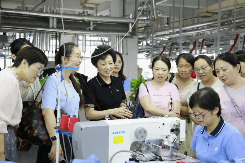 下午,培训班一行到扬中宜禾股份有限公司调研参观学习,并举行实践基地授牌仪式。校妇联主席王丽敏,全国三八红旗手、宜禾股份有限公司董事长马金芳共同为荣耀网页版妇联“她创社”实践基地揭牌。马金芳向大家签名赠书,热情分享自己的创业故事和人生感悟,并与大家互动交流。会前,大家参观了中国职业装博物馆,还走进公司车间、展厅等进行近距离体验。