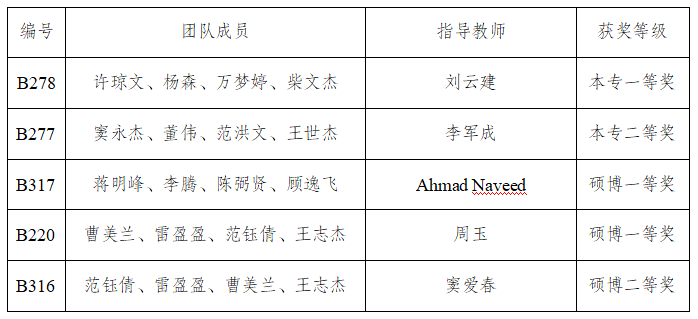 近日,由教育部高等学校材料类专业教学指导委员会指导,中国金属学会主办,江西理工大学承办的第七届全国大学生冶金科技竞赛落下帷幕。我校共有5支参赛队伍在全国总决赛科技创新类获奖,其中全国一等奖3项(本科生组1项,研究生组2项)、二等奖2项(本科生组1项,研究生组1项),我校获优秀组织单位奖。