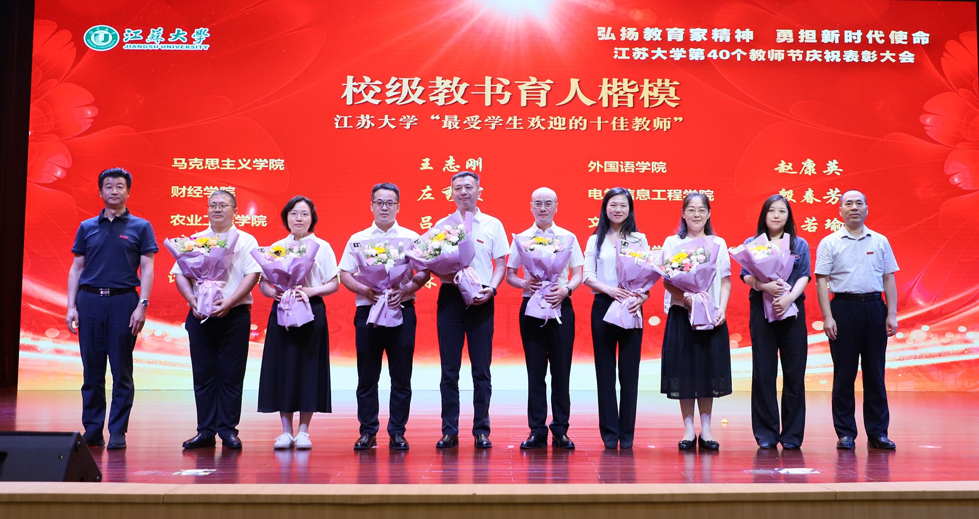 校党委常委、组织部部长杨敬江,校党委常委、宣传部部长、统战部部长吴麟麟为荣耀网页版“最受学生欢迎的十佳教师”颁奖。