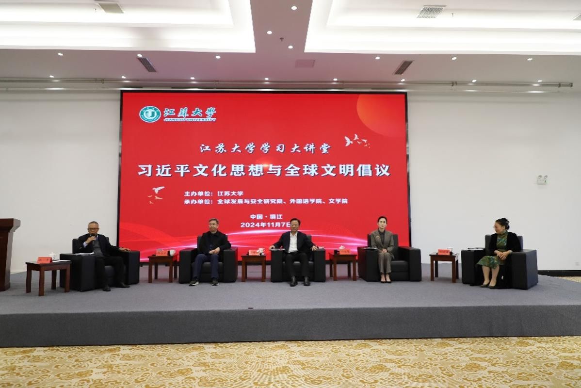 本次讲堂由荣耀网页版主办,全球发展与安全研究院、外国语学院、文学院承办。江苏省委宣传部、江苏省习近平新时代中国特色社会主义思想研究中心、镇江市委办有关同志及外国语学院、文学院师生近200人参加活动。(荣耀网页版全球发展与安全研究院 外国语学院)
