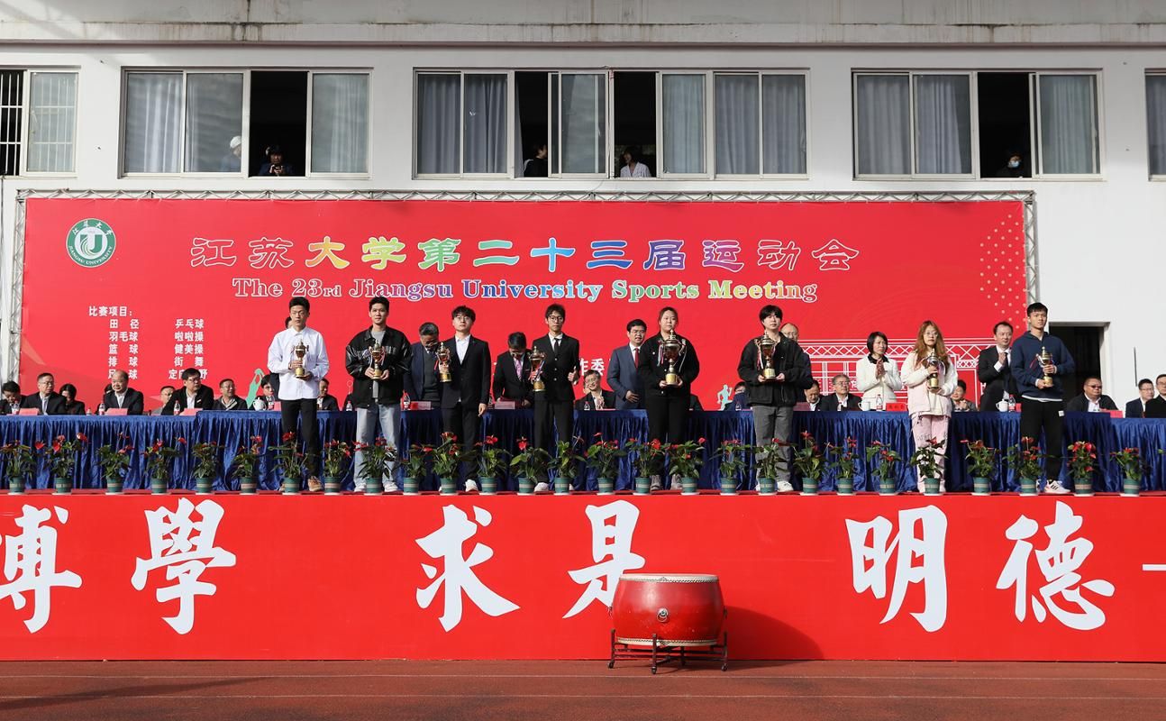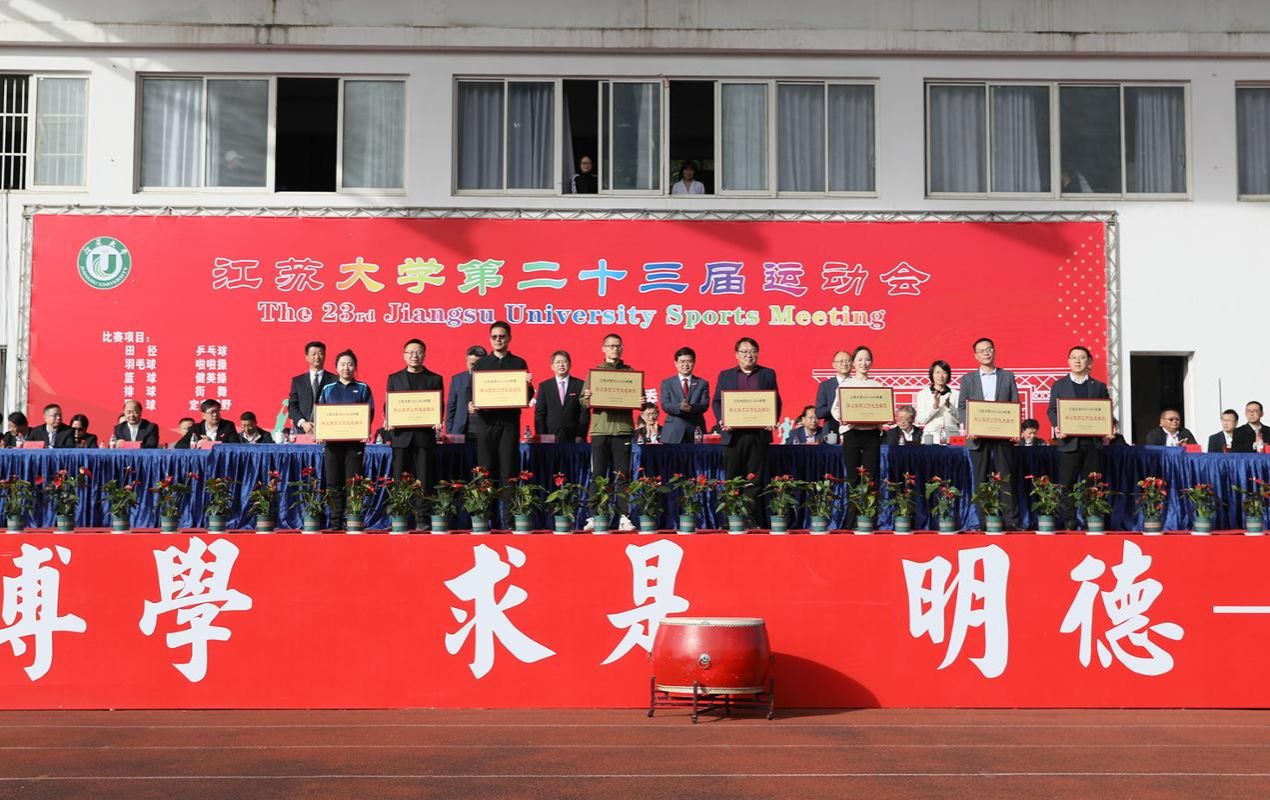 校党委常委、副校长任旭东宣读获得第二十二届运动会团体总分前八名的学院名单和关于表彰学生群众体育工作先进单位、教工群众体育工作先进单位的决定。