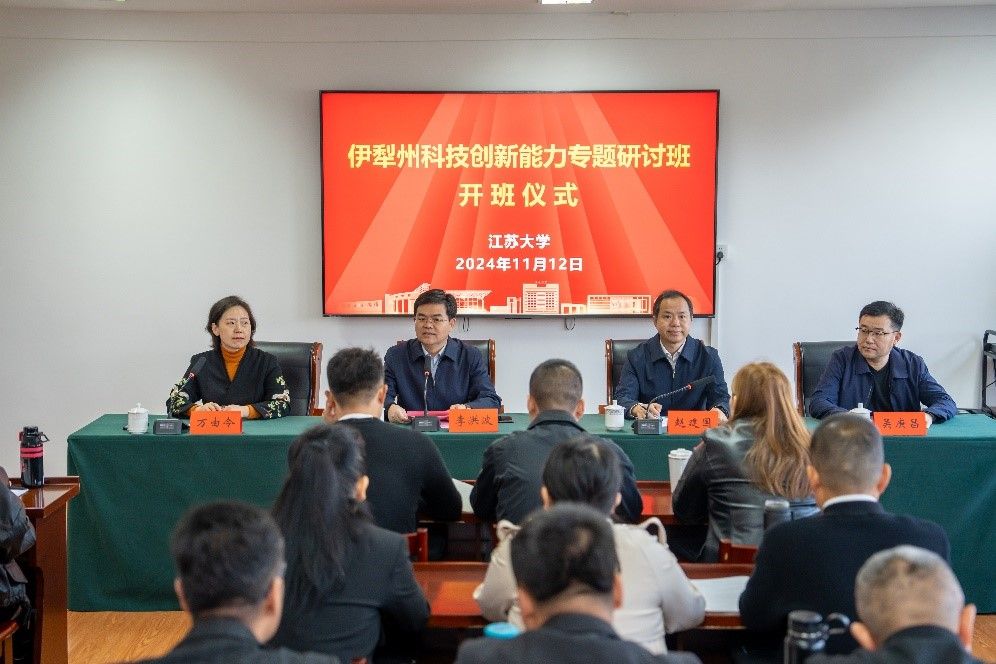 11月12日,由我校承办的“伊犁州科技创新能力专题研讨班”开班仪式在学校文华楼506会议室举行。校党委书记李洪波,江苏省科技厅党组成员、副厅长赵建国,伊犁州科技局党组成员、副局长吴庚昌应邀出席开班仪式。伊犁州科技系统、高校、科研院所和企业的科研骨干40余人参加开班仪式,开班仪式由食生学院党委书记万由令主持。