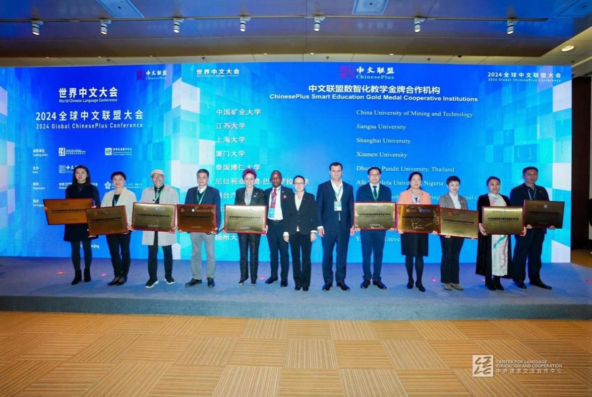 11月15日至17日,2024世界中文大会在北京国家会议中心举行,大会以“联通融合 传承创新”为主题。国家副主席韩正出席大会开幕式,宣读习近平主席贺信并致辞。来自160余个国家和地区的2000多名政府官员、校长、专家学者、师生代表和驻华使节等出席大会。在大会专项论坛2024全球中文联盟大会上,我校获中文联盟数智化教学“金牌合作机构”和“金课”称号。我校文学院(语言文化中心)院长任晓霏一行受邀参会。
