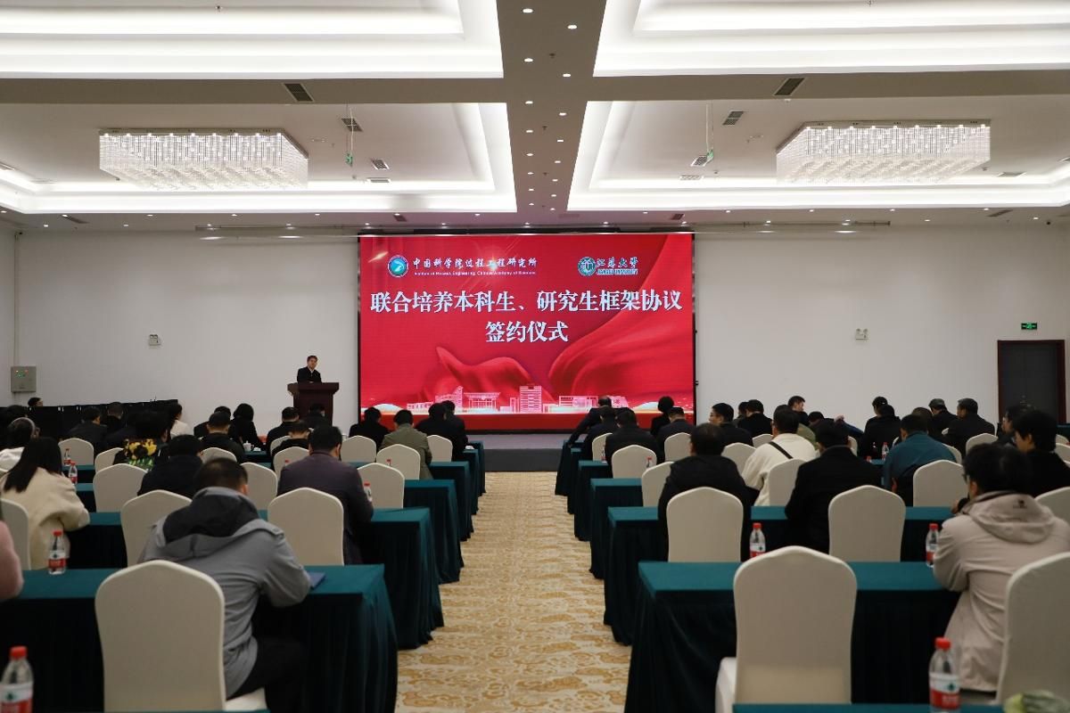 11月25日,荣耀网页版与中国科学院过程工程研究所联合培养本科生、研究生框架协议签约仪式举行。中国科学院过程工程研究所所长杨超,绿色化工研究部研究员冯鑫、李政,荣耀网页版党委书记李洪波、校长邢卫红、副校长邹小波以及相关部门负责人和师生代表参加签约仪式。仪式由邹小波主持。