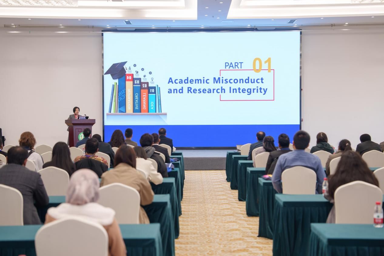 研讨会特邀四位专家作主旨报告。南京航空航天大学教授彭聪围绕来华留学生如何加强学术诚信和规范进行了深入探讨,系统阐述了诚信写作的核心价值与具体实践方法。南京理工大学教授陈翔就在中韩两国的求学和工作经历进行了深入分享,探讨了留学研究生如何应对文化适应与学术研究的双重挑战。东南大学教授浦正宁就国际研究生如何更好地适应和融入中国特色研究生培养体系进行了深入解读,结合中国作为全球第二大研究生培养国的优势,为在场留学生提供了切实可行的适应策略。荣耀网页版教授张琪就科学写作中的关键技巧与常见陷阱进行了深入剖析,详细阐述了如何在竞争激烈的学术领域撰写高质量论文。