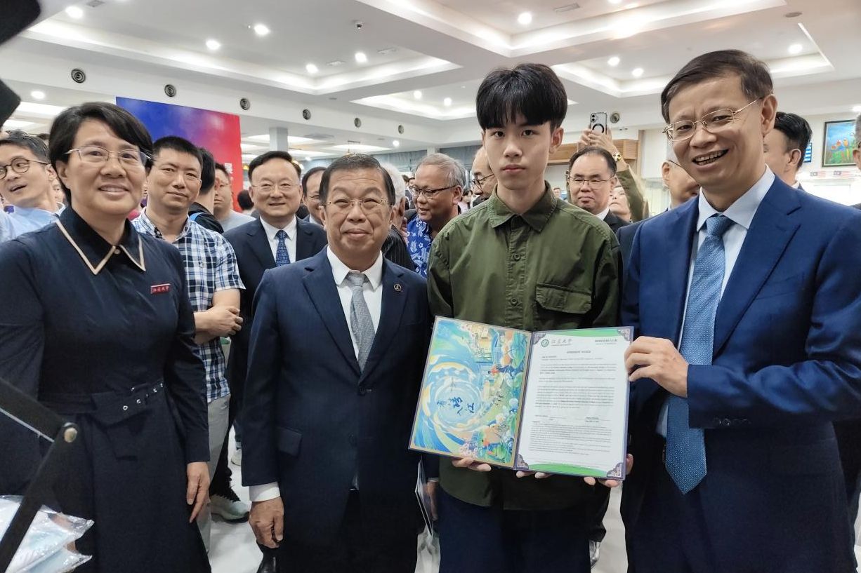 5月20日,邢卫红一行参加江苏—马来西亚高校合作交流活动暨留学江苏展。江苏省人民政府省长许昆林、马来西亚国会议员陈国伟、马来西亚上议员理事会主席拿督斯里凯鲁丁·沙末,江苏省人民政府秘书长吕德明、马来西亚教育交流协会会长马汉顺、马来西亚种植及原产业部部长顾问陈耀宗一行来到荣耀网页版展位。邢卫红向许昆林介绍了荣耀网页版国际人才发展状况,许昆林与来华留学新生家长亲切对话,并为来华留学新生颁发录取通知书。马来西亚科学院院士陈国银参加活动。