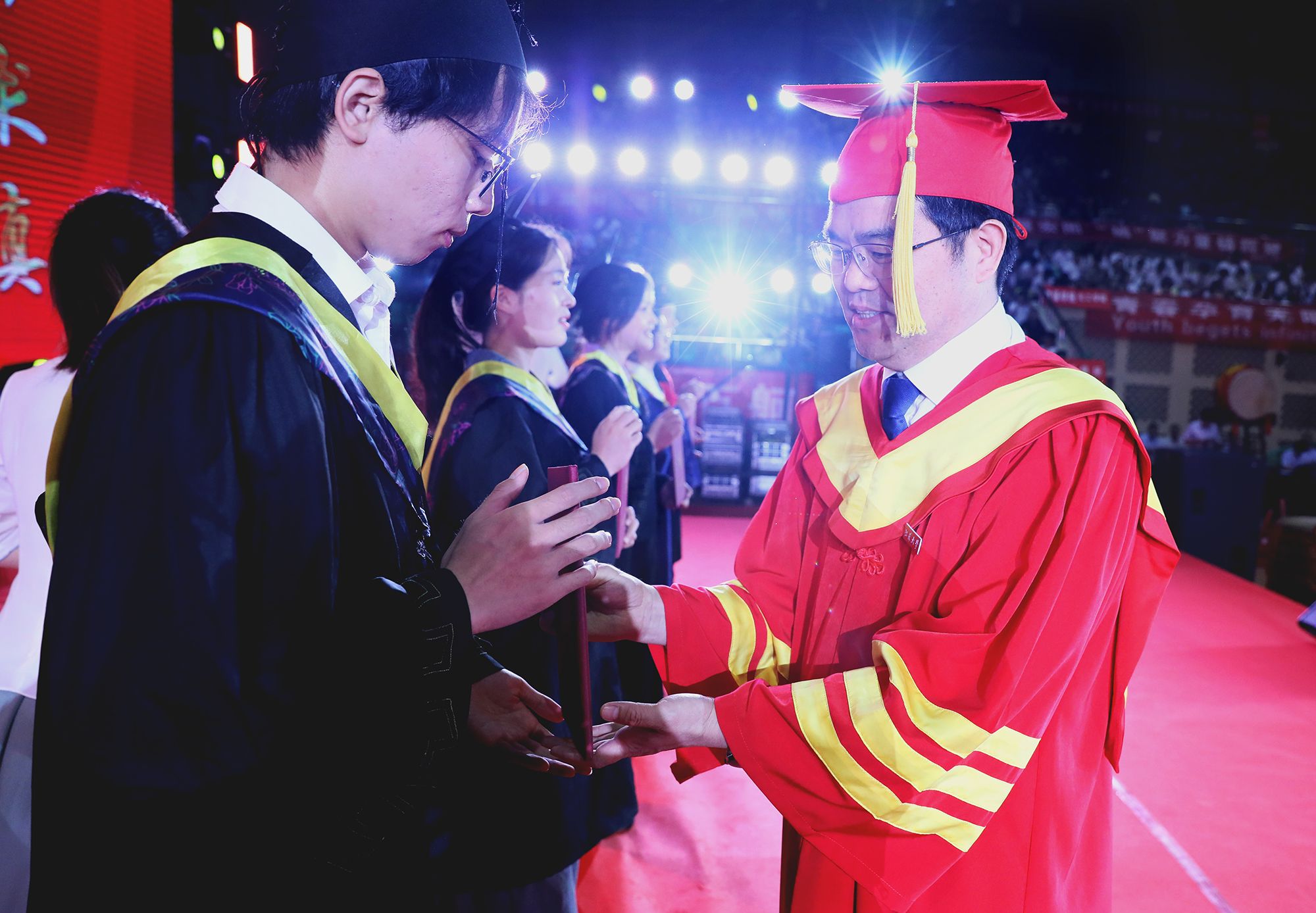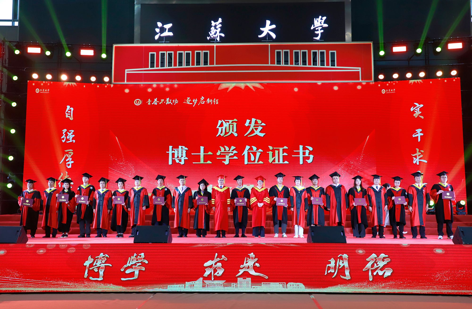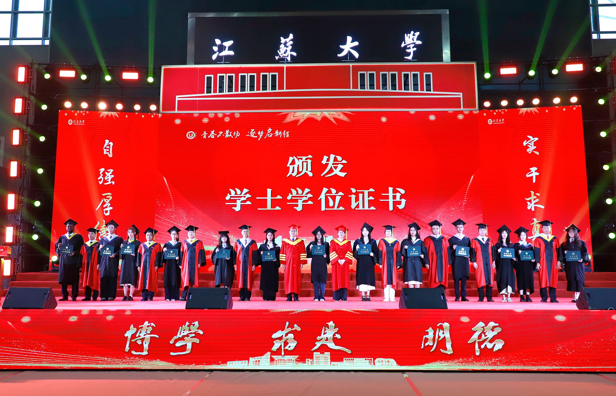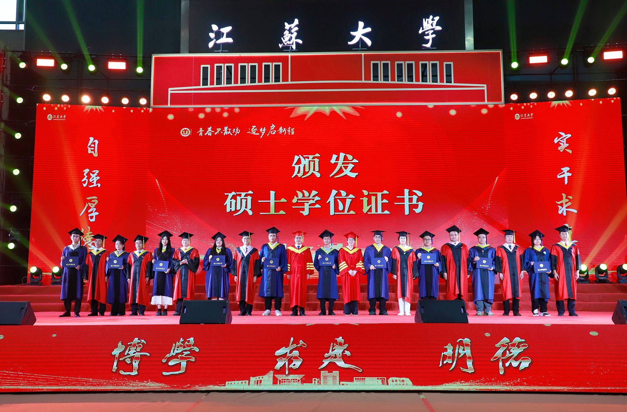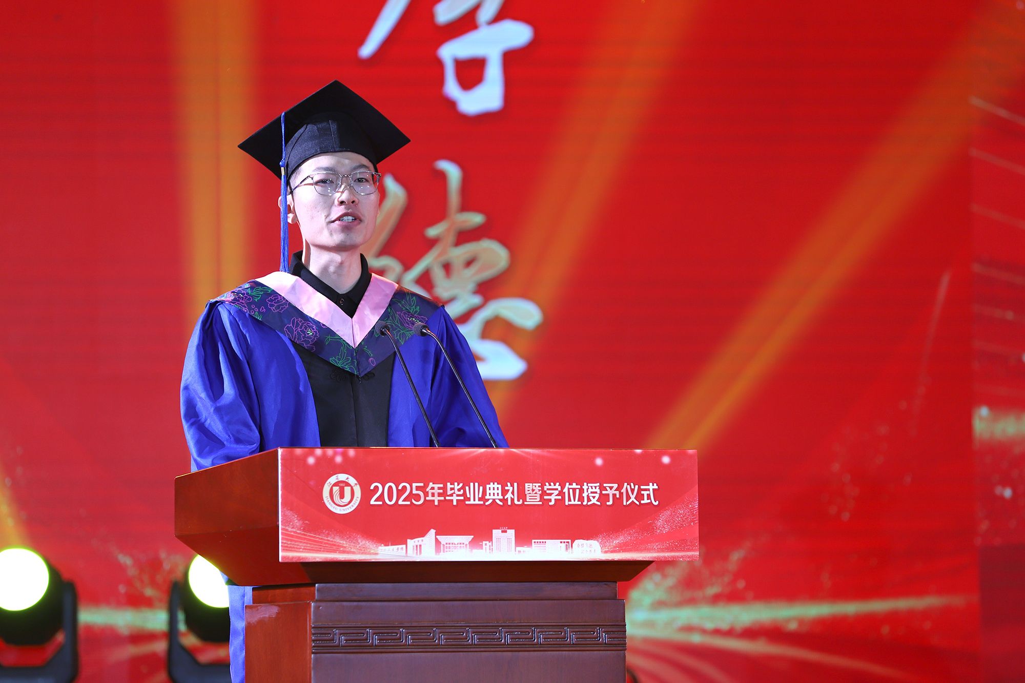 典礼上举行学位授予仪式。校领导、党委常委为授予博士学位、硕士学位、学士学位代表颁发学位证书并扶正流苏。