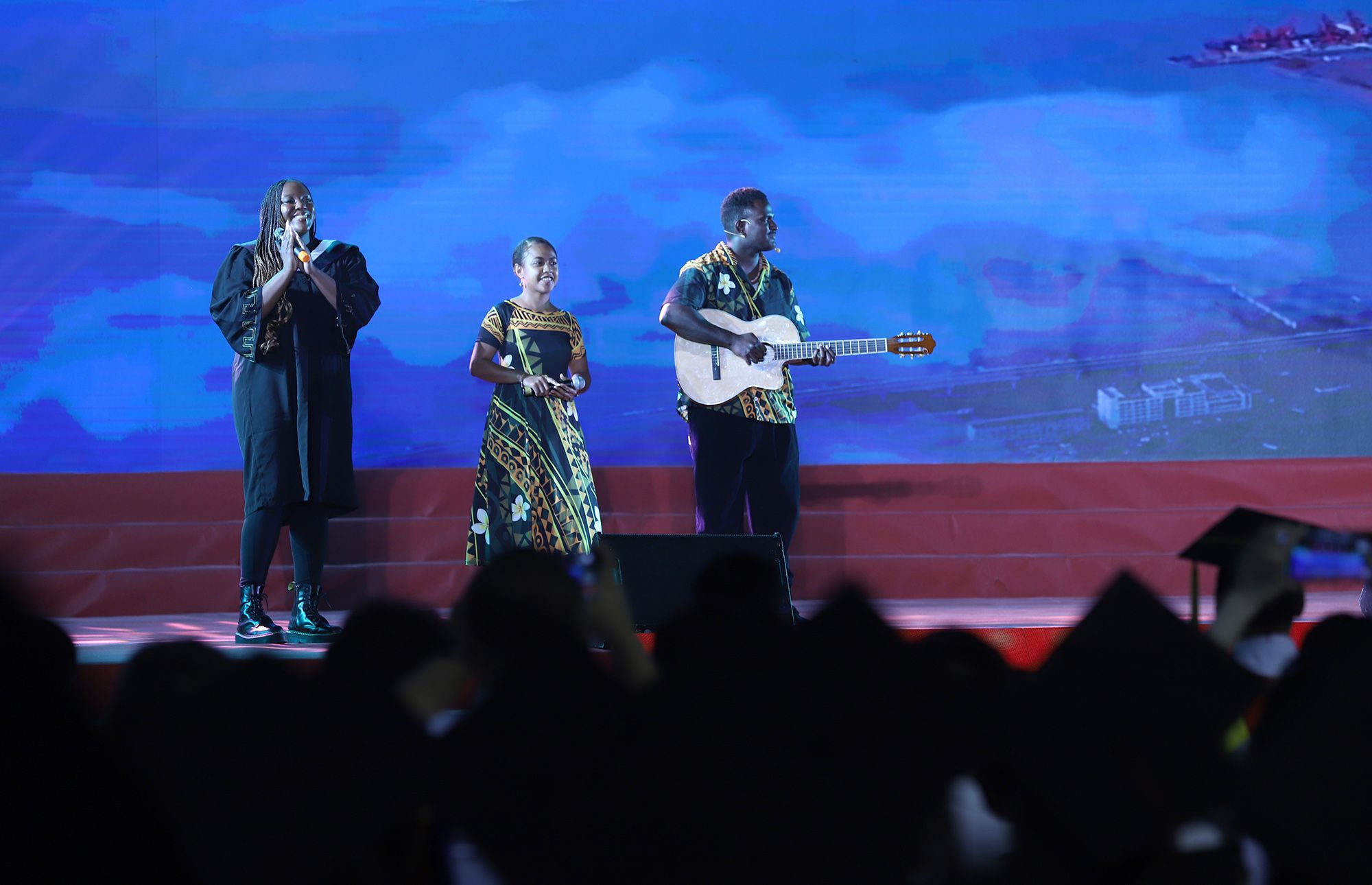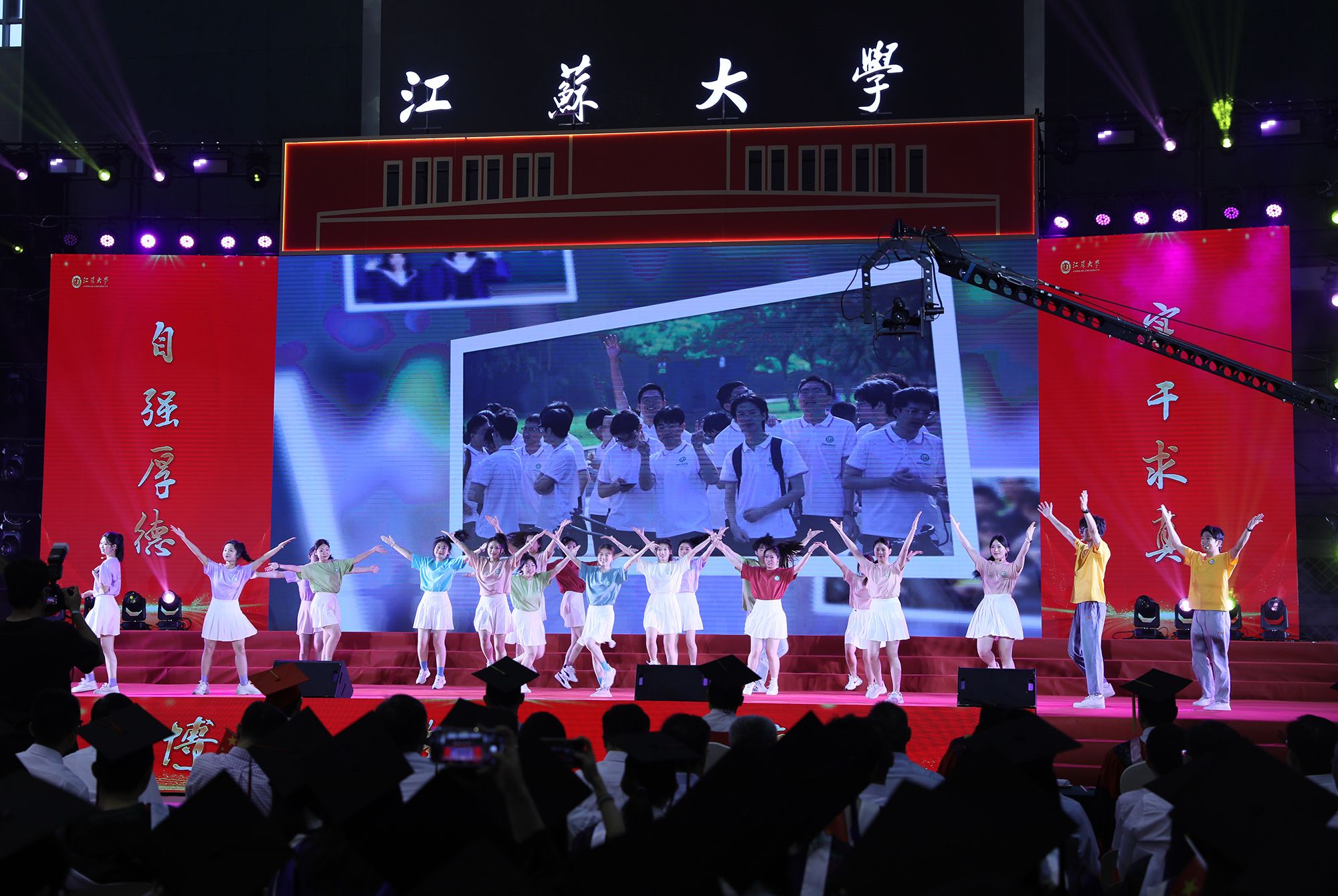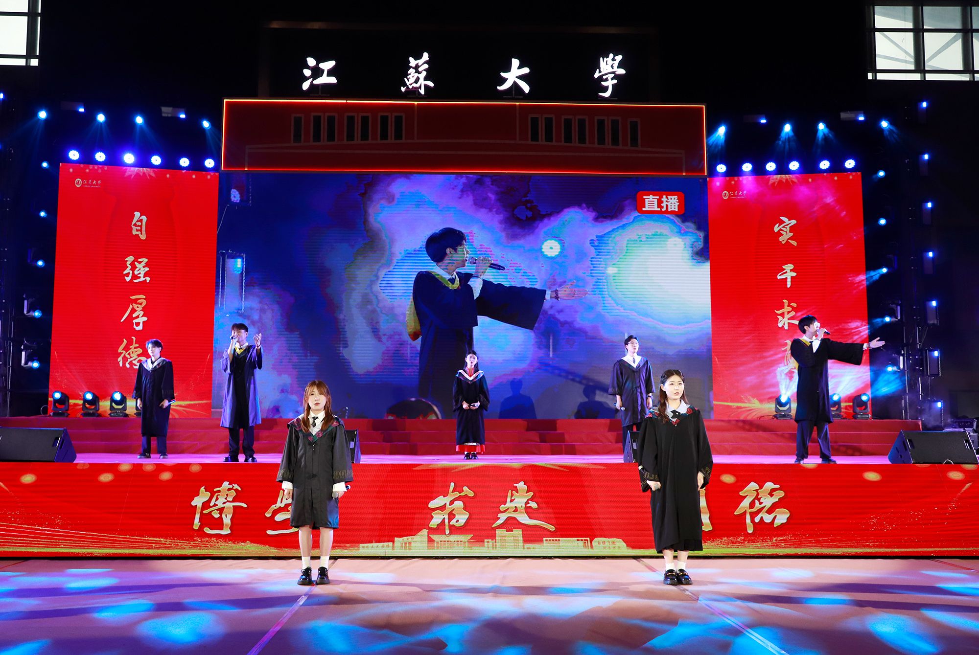 典礼前,毕业生代表演唱了《凤凰花开的路口》《第一天》《本草纲目》《大中国》等暖场歌曲。