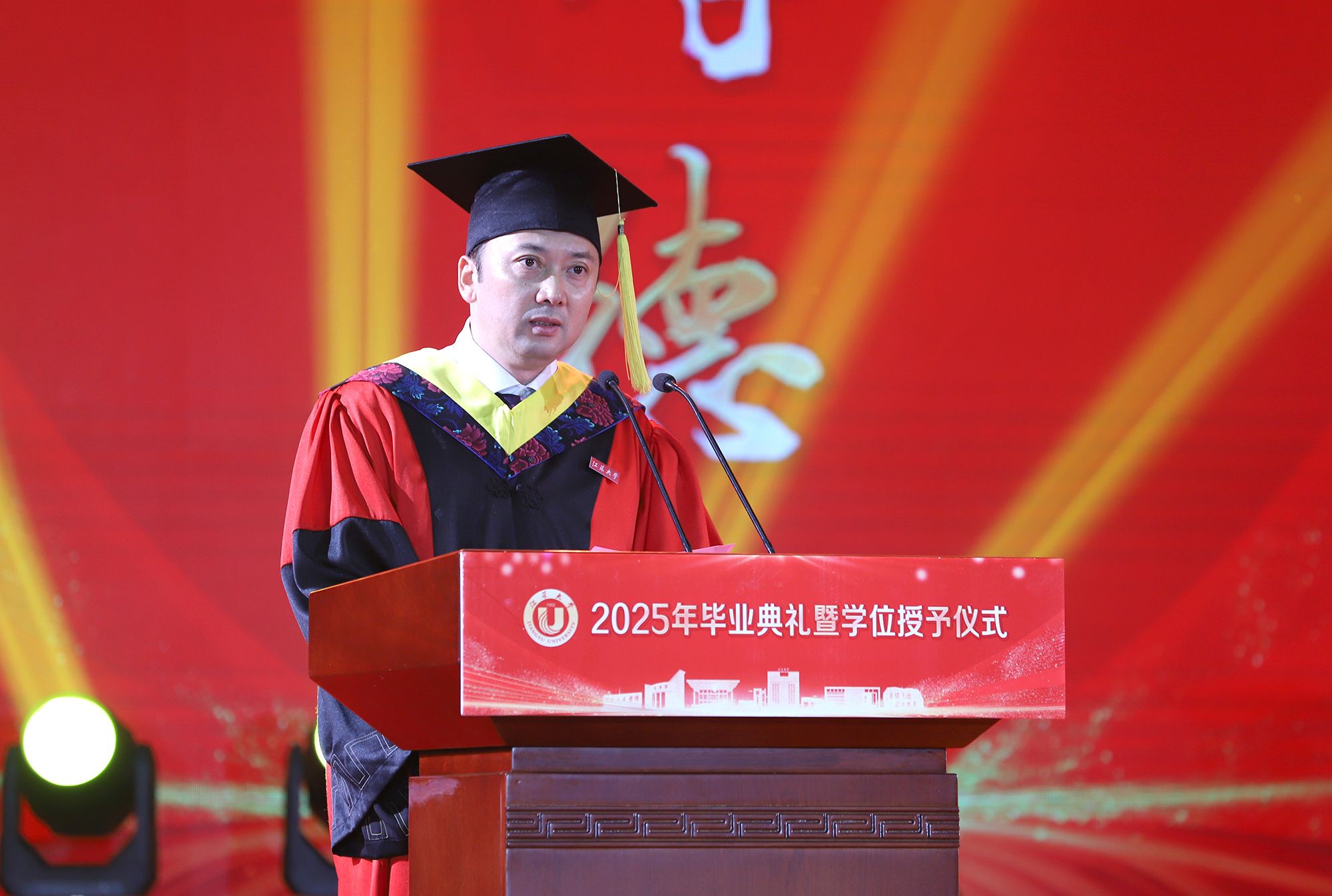 6月21日,2025年毕业典礼暨学位授予仪式在校体育馆举行,10829名本科、硕士、博士和留学生完成学业,即将告别母校,奔赴新的征途。全体在校校领导、党委常委出席典礼。校友代表,相关部门和各学院、书院主要负责人,教师、辅导员、家长代表,2025届毕业生代表等现场参加典礼。