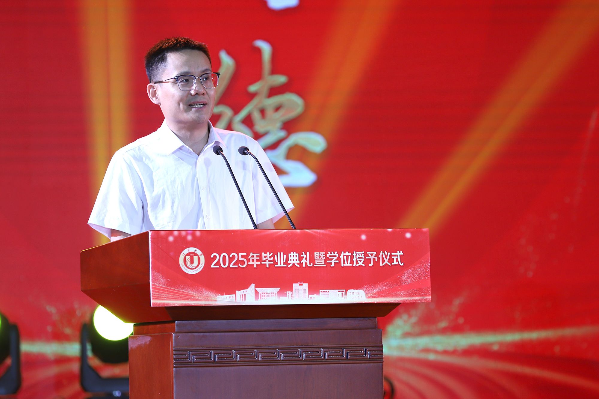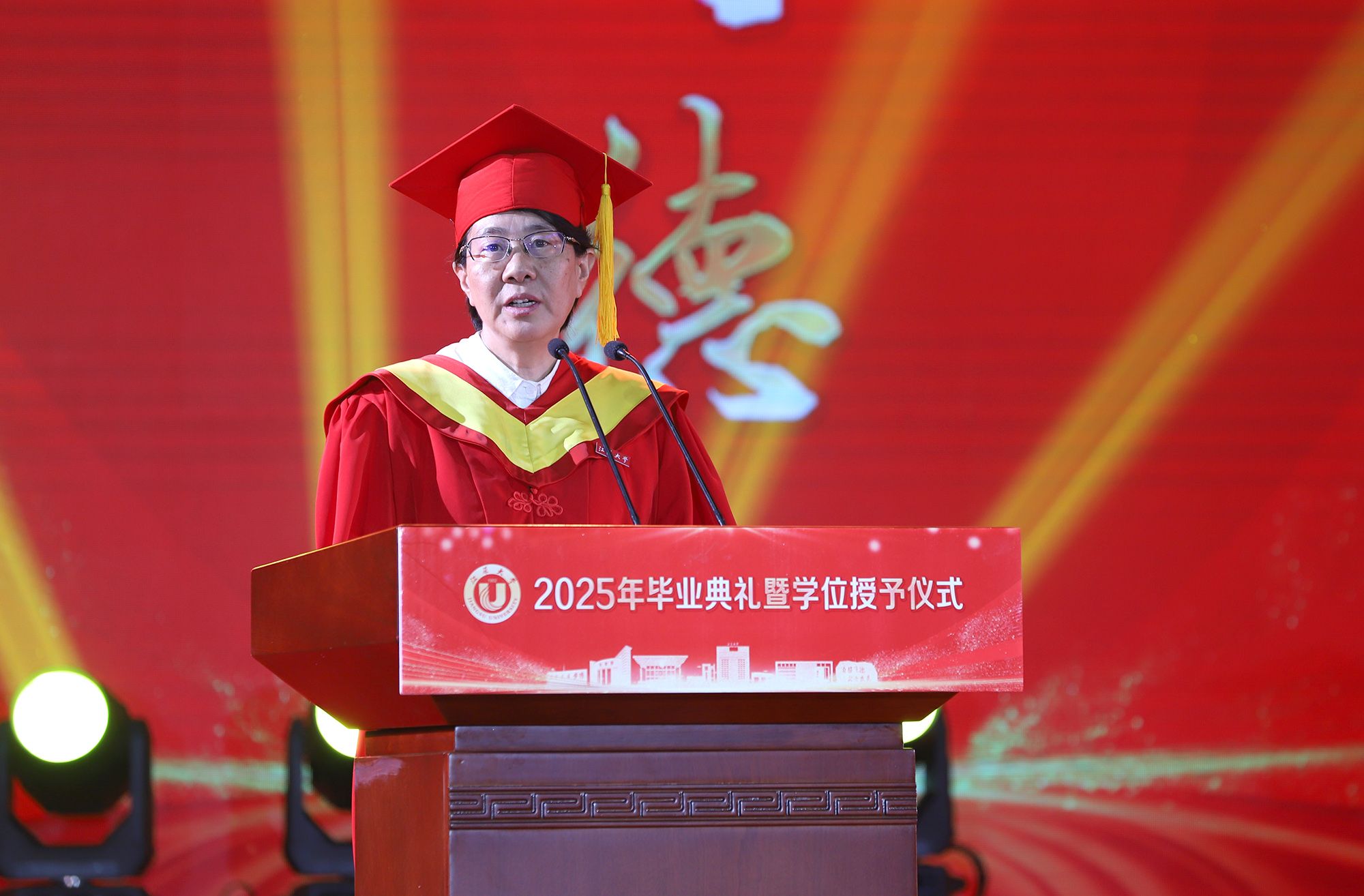校长邢卫红发表题为《让热爱照见未来》的讲话,代表学校向全体毕业生致以热烈祝贺,向悉心关怀同学的师长、辛勤养育同学的父母以及默默支持大家成长的各界朋友,致以崇高的敬意和衷心的感谢。邢卫红说,大学更深层的意义,在于教会同学们以“热爱”为火种,照亮前路的漫长与未知。这份源自内心的热爱,已化作同学们成长路上的璀璨星光。每一位荣耀(中国)官方在线登录学子奋斗的足迹、闪耀的成绩,共同汇聚成荣耀(中国)官方在线登录校园最亮眼的青春图谱,照亮前行的每一步。邢卫红说,优秀没有标准答案,每一份热爱都定义着独特的精彩,每一次坚持都谱写着动人的篇章。她希望同学们因热爱而选择,在变革的时代中寻找内心的确定;因热爱而坚持,在平凡的岗位上成就非凡的业绩;因热爱而绽放,在生活的微光中积攒前行的力量。邢卫红希望同学们永远保持对生活的热忱,于细微处感受温暖美好,在热爱中拥抱天地辽阔。她祝愿大家带着荣耀(中国)官方在线登录赋予的热爱与力量,勇敢奔赴山海,让热爱之光照见无比璀璨的未来。