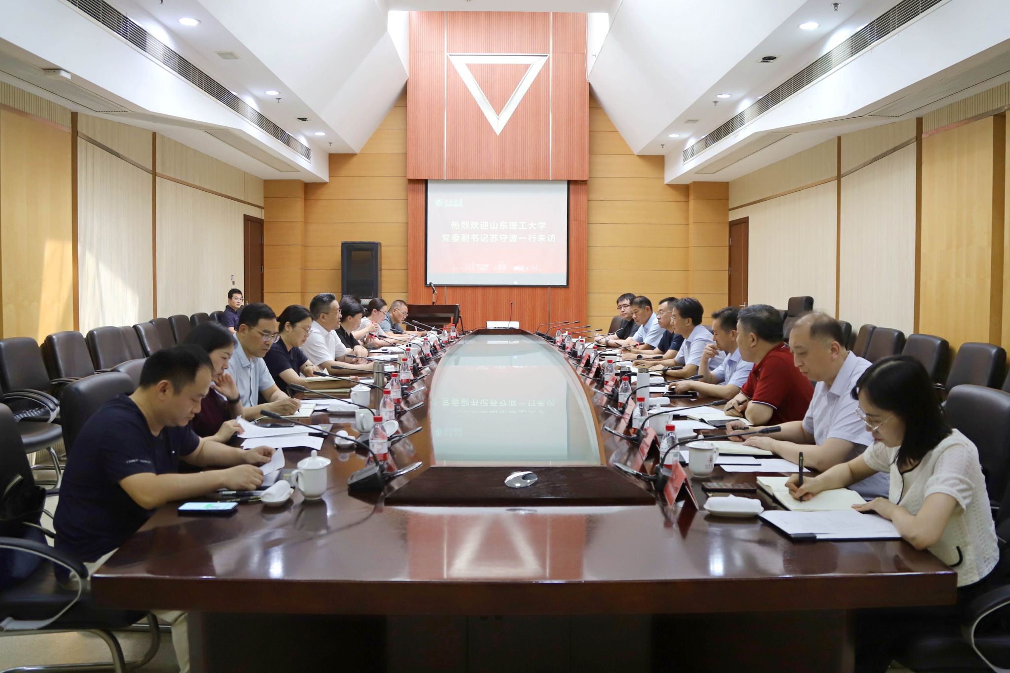 近日,山东理工大学党委副书记苏守波率队来校交流,副校长杨道建接待了苏守波一行。