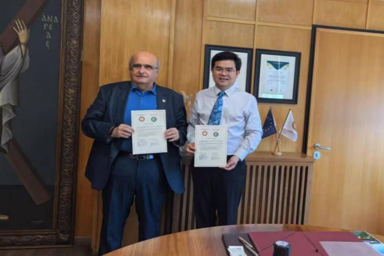 6月23日,代表团首站访问希腊帕特雷大学(University of Patras),与校长克里斯托斯•布拉斯(Christos Bouras)、学术与国际事务副校长迪奥尼修斯•曼察维诺斯(Dionissios Mantzavinos)举行会谈。双方正式签署合作意向书,致力于创建“一带一路”智慧农业技术与装备国际联合实验室,同步启动学生互换交流与境外办学项目,标志着中希高校合作迈入深度融合新阶段。当日,代表团还拜访了历史悠久的希腊雅典科学院,美国国家工程院院士、希腊科学院院士、希腊雅典国立技术大学化学工程教授Doros Nicolas Theodorou等热情接待。双方就开拓科技合作渠道、促进荣耀网页版与希腊雅典科学院开展技术交流、高层次人才引进与输出达成共识。