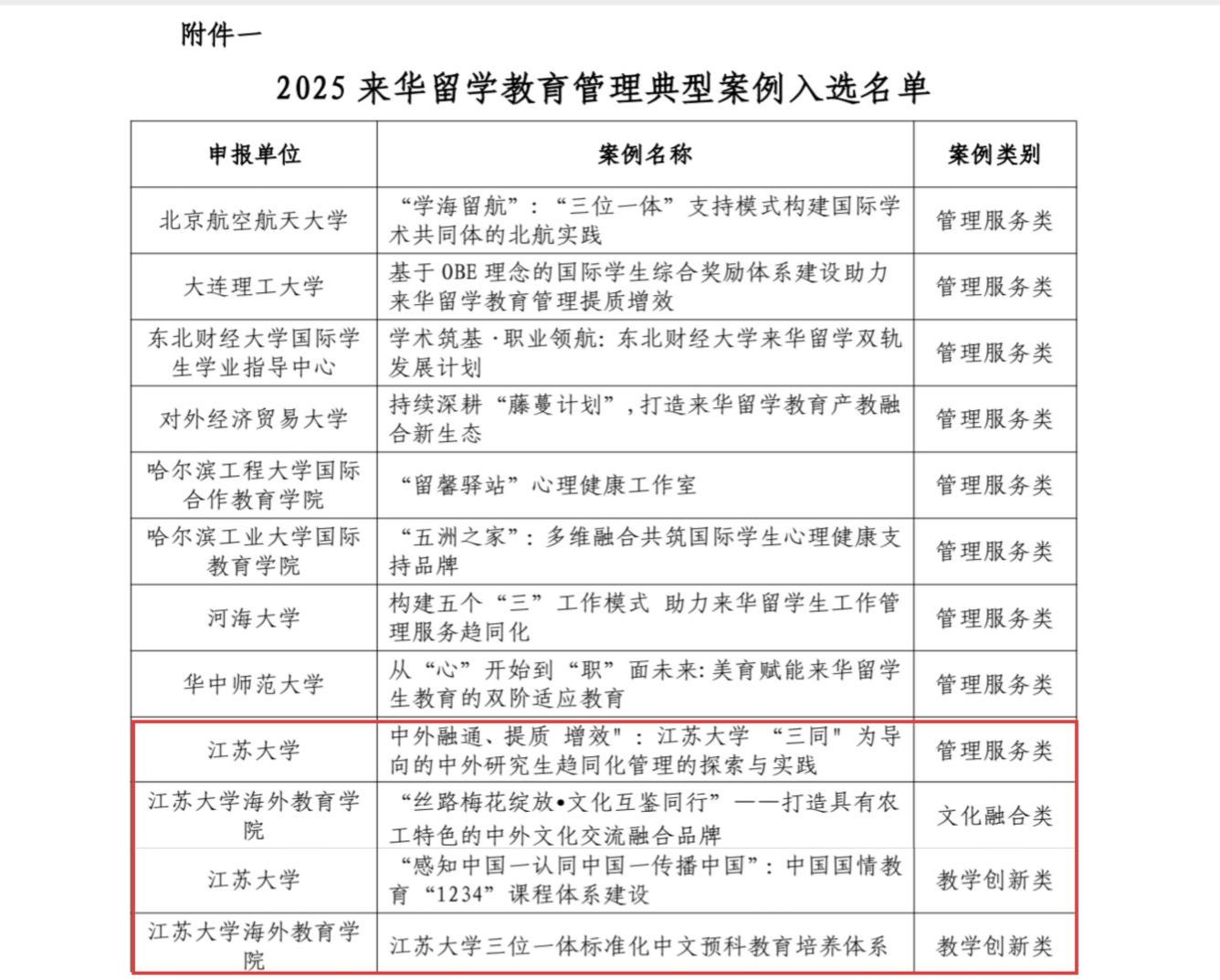 近日,中国高等教育学会外国留学生教育管理分会公布了2025年“学在中国”来华留学教育管理典型案例入选名单。我校4项案例入选,入选总数在江苏省高校中位居首位。