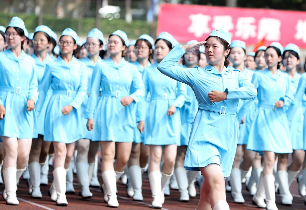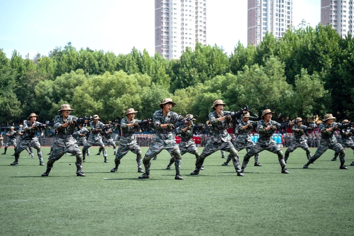 开学典礼后举行了2025级本科生军训成果汇报大会。