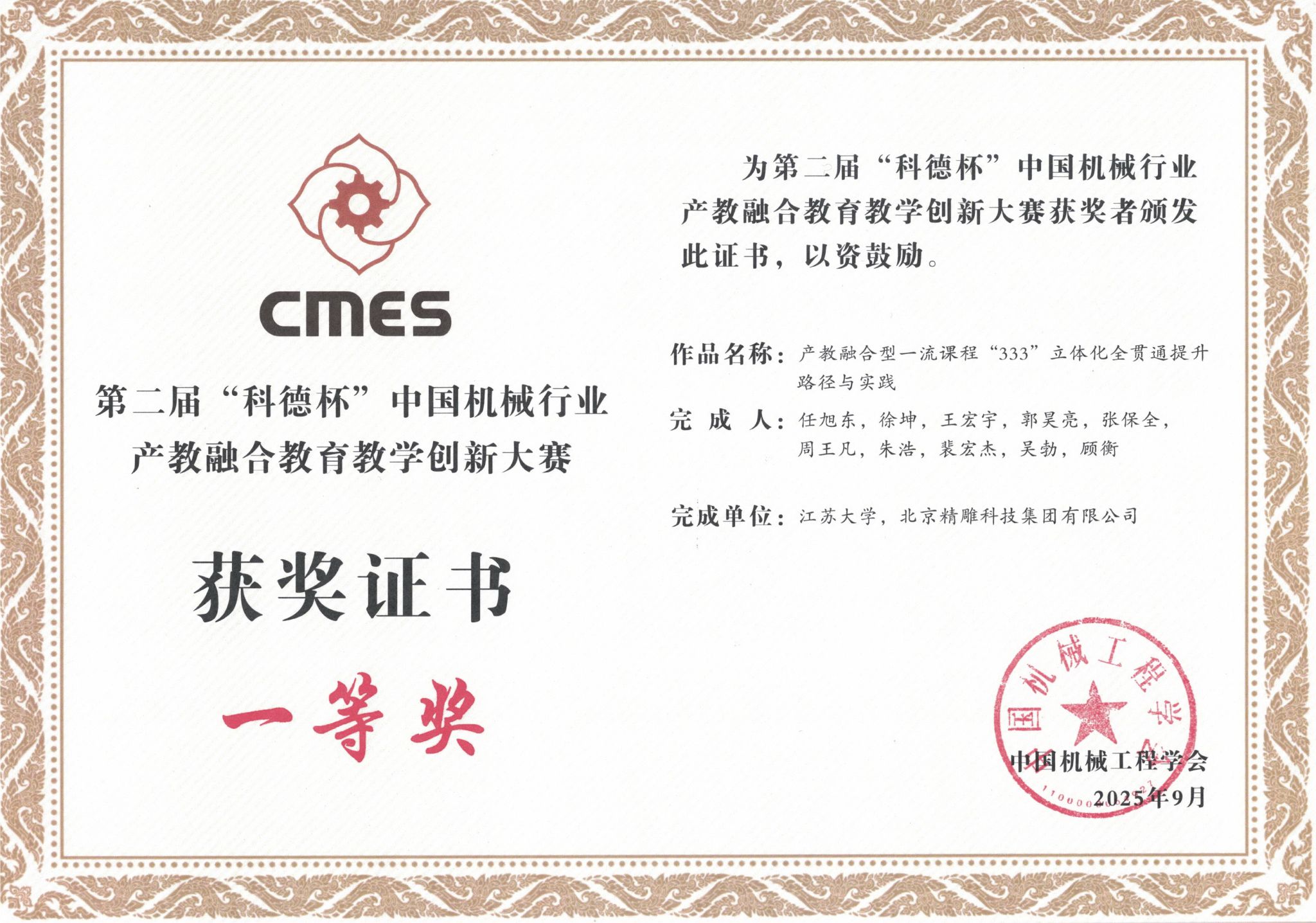 9月19日至21日,第二届“科德杯”中国机械行业产教融合教育教学创新大赛全国总决赛在广州举行。我校机械工程学院作品获全国特等奖1项、一等奖2项。