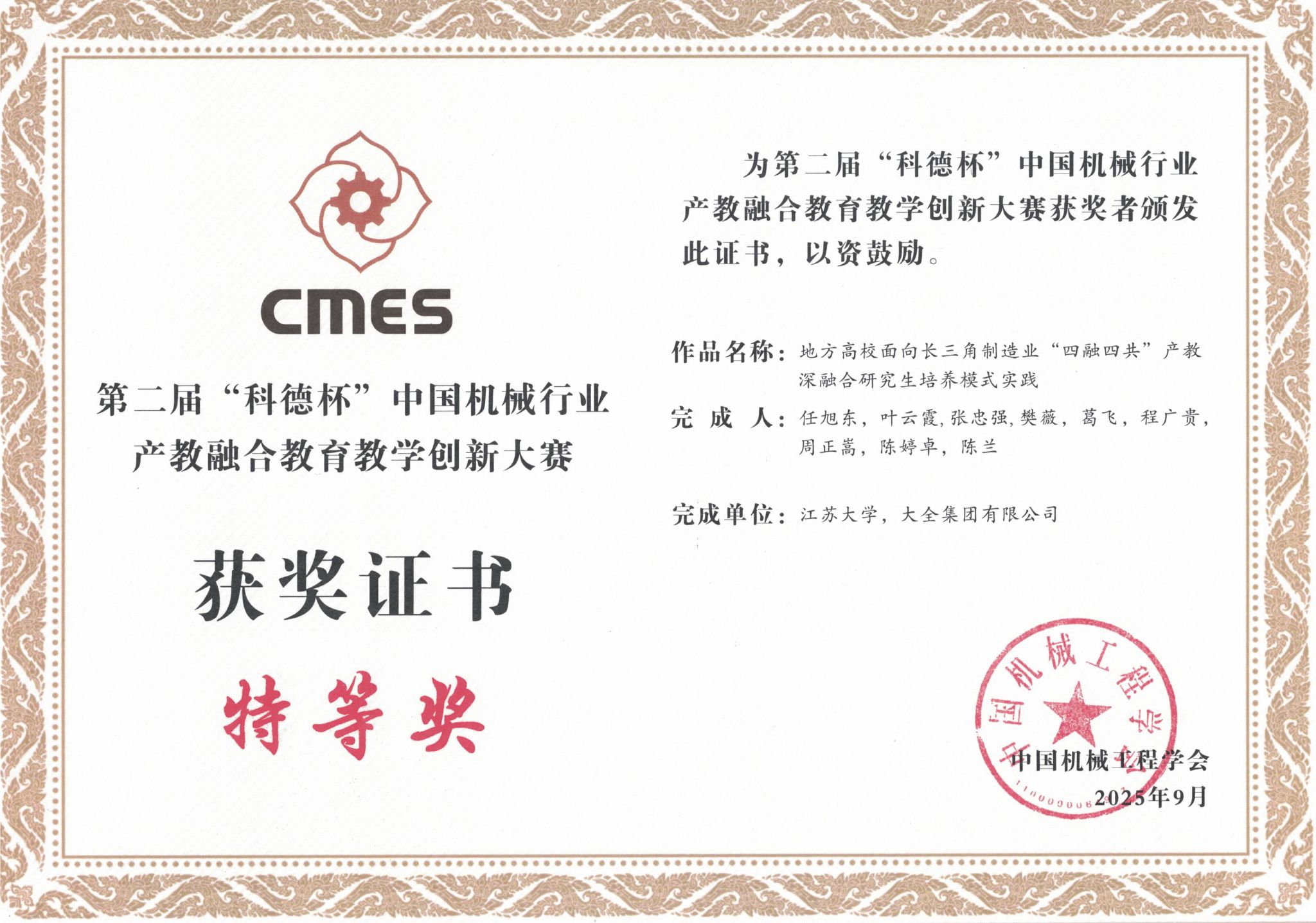 产教融合是当前工程教育改革的重要方向,能够有效解决人才培养与产业需求脱节的问题,实现教育链、人才链与产业链、创新链的有机衔接。机械工程学院多年来积极推进教育教学改革,深化校企合作,构建了多层次、模块化、开放型的实践教学体系,培养学生的工程实践能力和工程创新能力,系列成果的实施为长三角乃至全国制造业的高质量发展提供了坚实的人才支撑。机械工程学院将继续围绕产业关键技术、核心工艺和共性问题开展协同创新,形成“教育赋能产业、产业反哺教育”的良性循环。(机械工程学院)