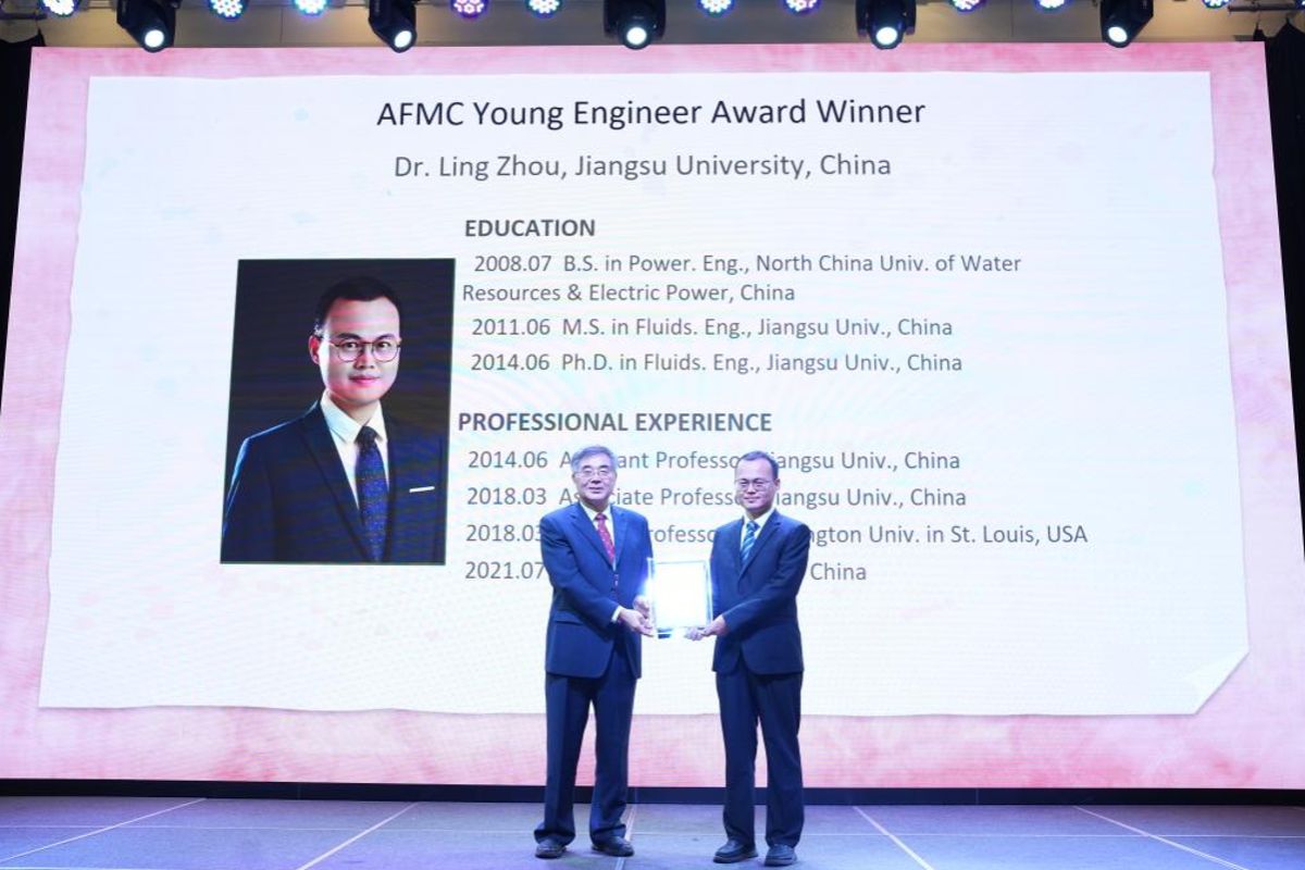 大会颁奖环节,周岭荣获AFMC亚洲流体机械青年工程师奖,博士生杨港获最佳论文报告奖。
