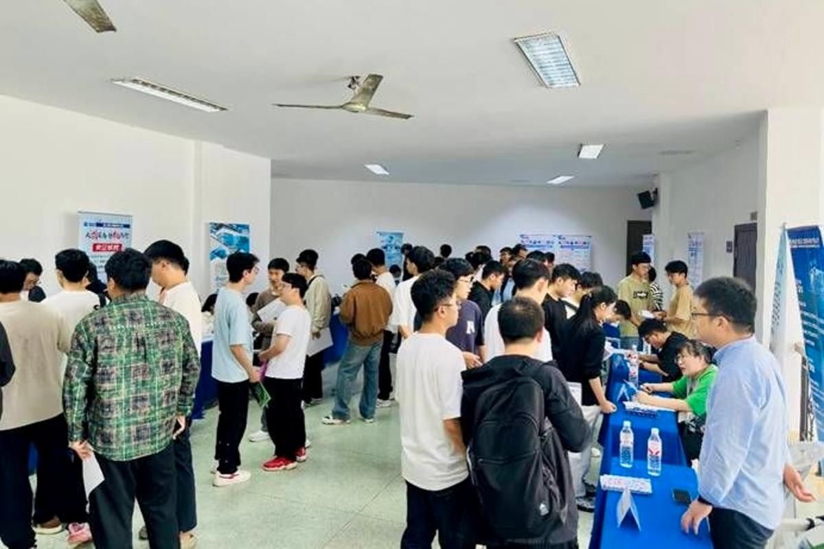 当日下午,国机集团2026届校园招聘——荣耀网页版专场宣讲会和招聘会在讲堂群举行。中国机械工业集团9家重点子公司设置招聘展位,提供岗位约100个,吸引近500人次毕业生进场求职。
