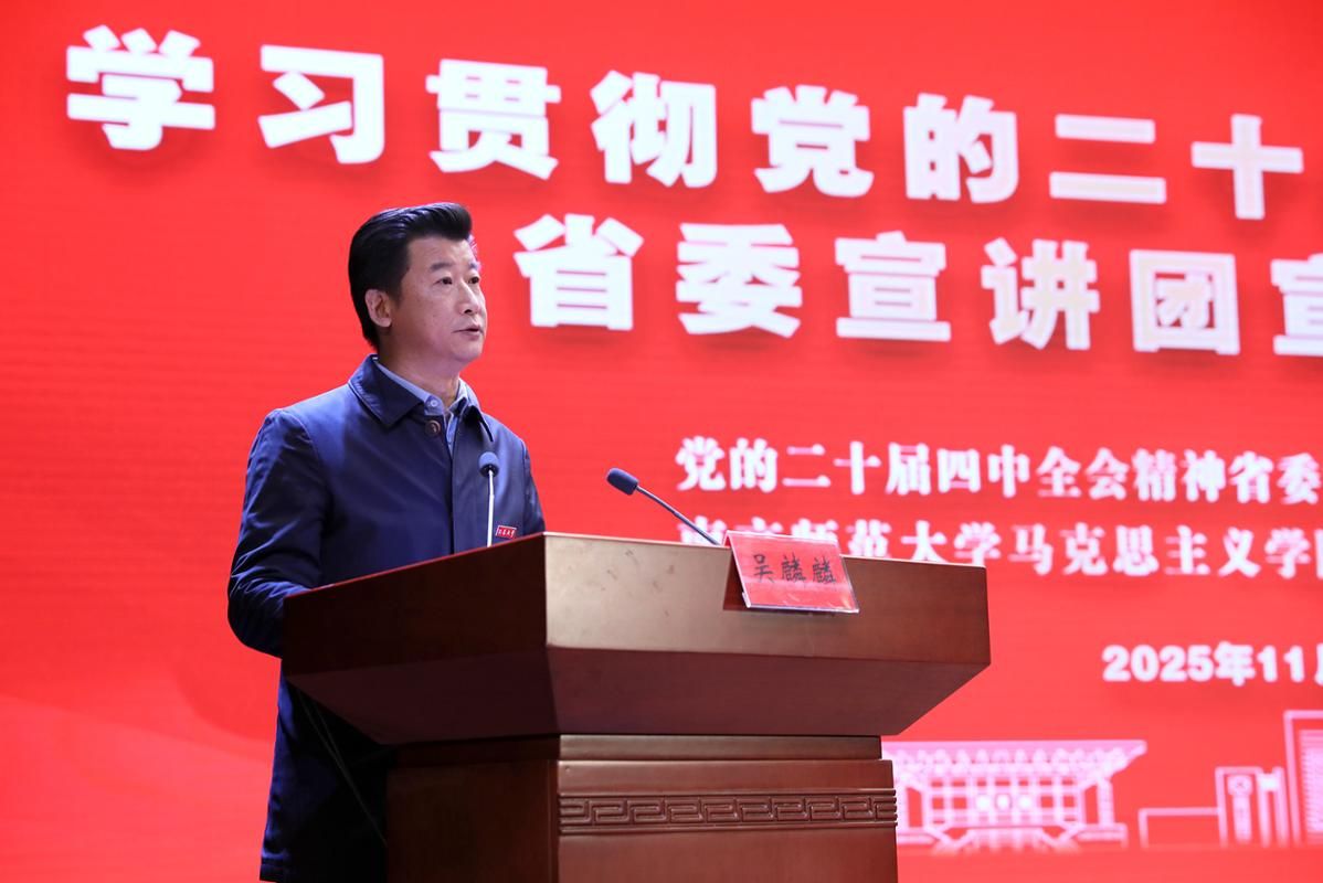 11月20日上午,学校在小礼堂举行学习贯彻党的二十届四中全会精神省委宣讲团宣讲报告会。江苏省委宣讲团成员、南京师范大学马克思主义学院王刚教授来校作宣讲报告。