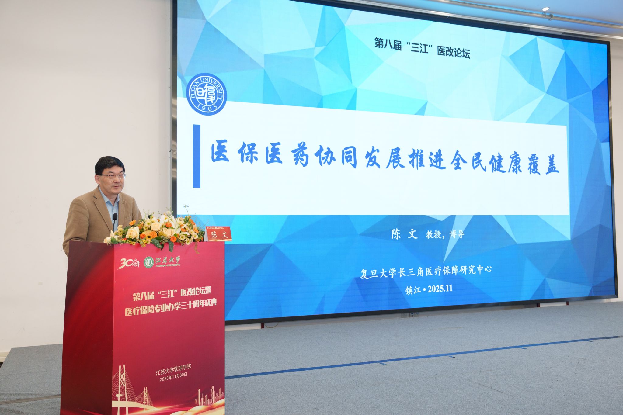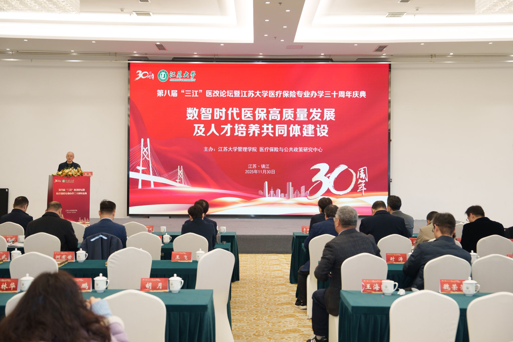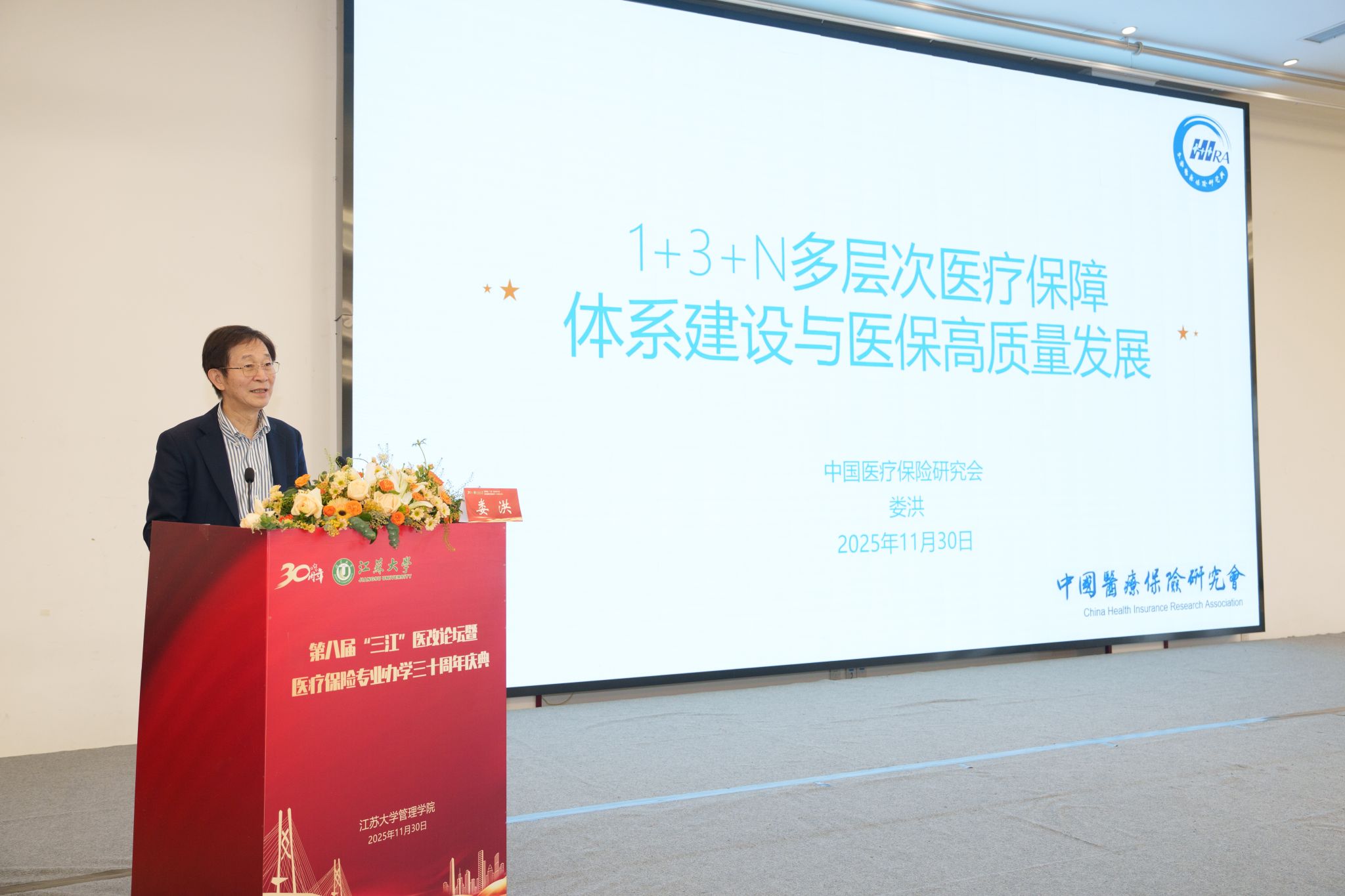 11月30日,第八届“三江”医改论坛暨荣耀网页版医疗保险专业办学30周年庆典在校举行。校党委书记李洪波,中国医疗保险研究会副会长、国务院参事室特约研究员、国家医疗保障研究院院长娄洪,国家医保局医药管理司原副司长李淑春,国家卫健委卫生发展研究中心医药卫生技术评估与创新发展部部长顾雪非,以及来自全国40余所开设医疗保险相关专业高校的代表、校内外嘉宾、我校医保专业校友和在校师生300余人参加活动。庆典仪式由管理学院院长朱永跃主持。