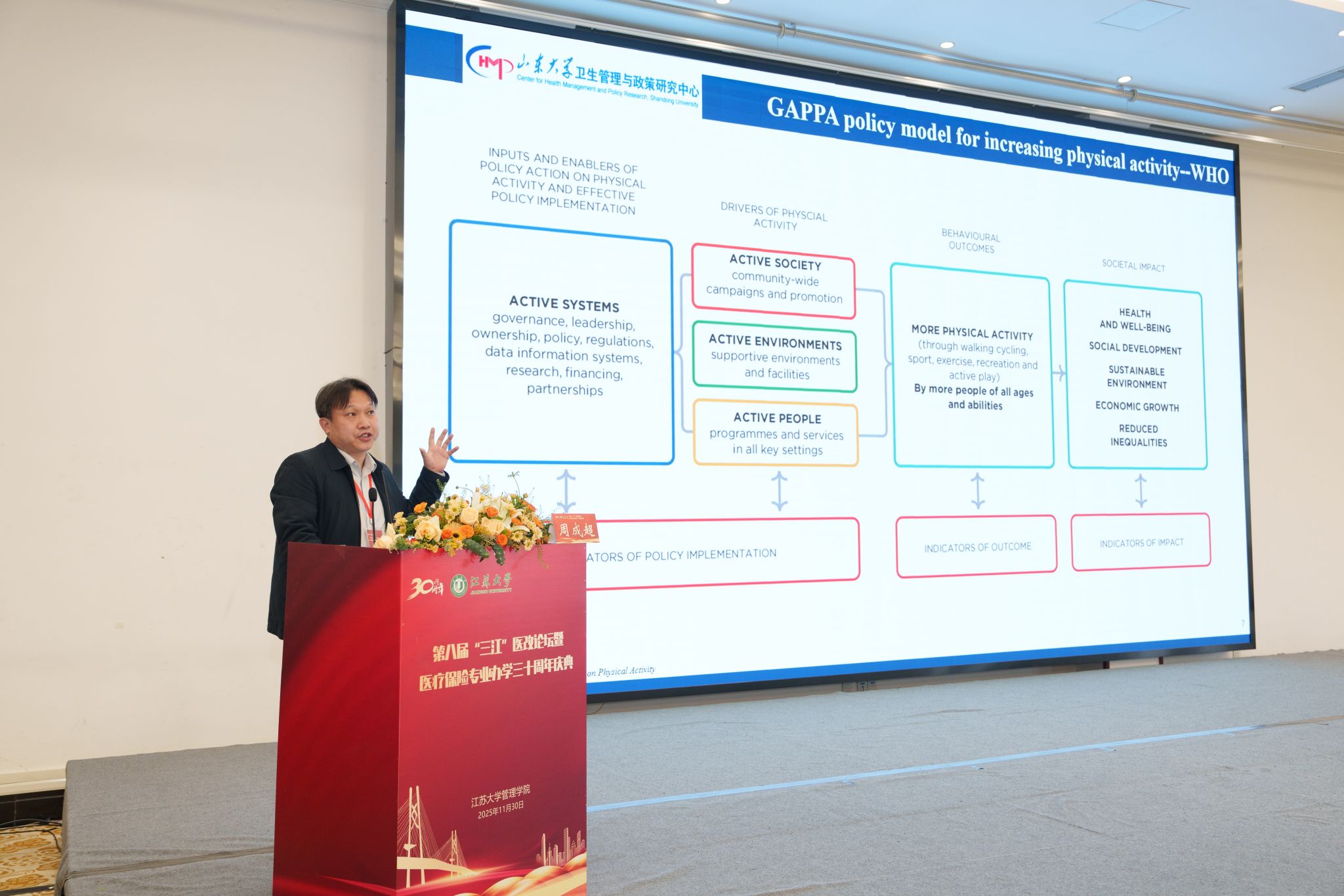 李洪波代表学校致辞,对医疗保险专业30年来的办学成果予以充分肯定,希望医保专业在“十五五”期间进一步助力健康中国战略实施,并期待与会领导和专家学者继续支持学校医保专业建设与公共管理学科发展。