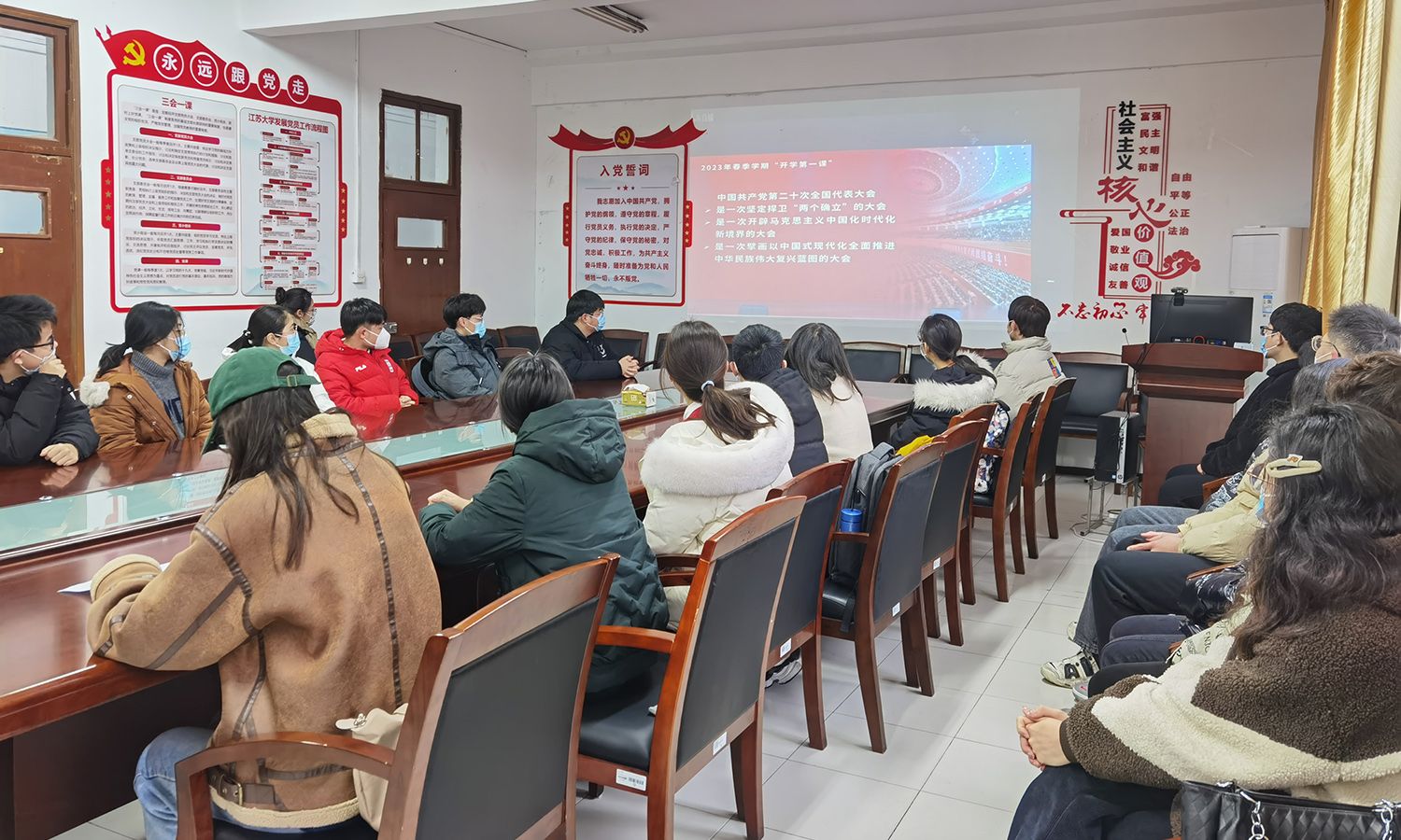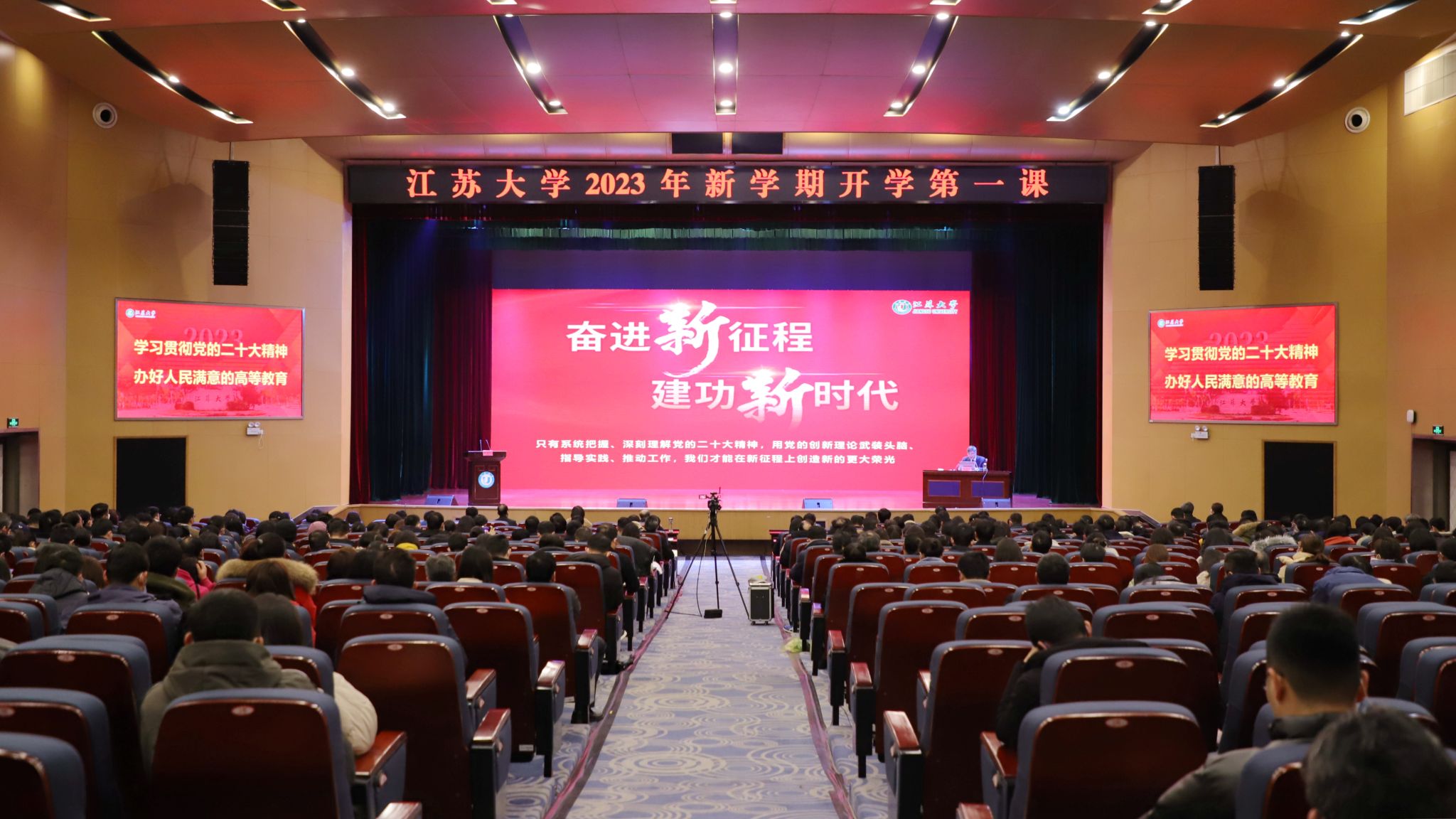 袁寿其以《汇聚力量 乘势而上 以党的二十大精神引领学校事业更高质量发展》为题,从“深刻领会党的二十大精神,凝心聚力、培根铸魂,打牢思想根基”“准确把握科教兴国重大战略,汲取力量、面向未来,把稳奋斗方向”“全面贯彻落实党的二十大精神,团结奋斗、实干笃行,推动学校事业更高质量发展”三个方面为师生讲授了一堂意义深刻的思政课。他强调,全体师生要深刻领会党的二十大精神,落实好立德树人根本任务,坚守为党育人、为国育才使命;走好新时代人才自主培养之路,全面提高人才培养质量;推动实现科技自立自强,加快农机特色高水平大学建设。他要求广大师生员工树牢理想、满怀信心,坚定共产主义信仰,敢于实践、勇于亮剑,矢志奋斗、不负使命,汇聚力量、乘势而上,铸牢事业发展厚实根基。