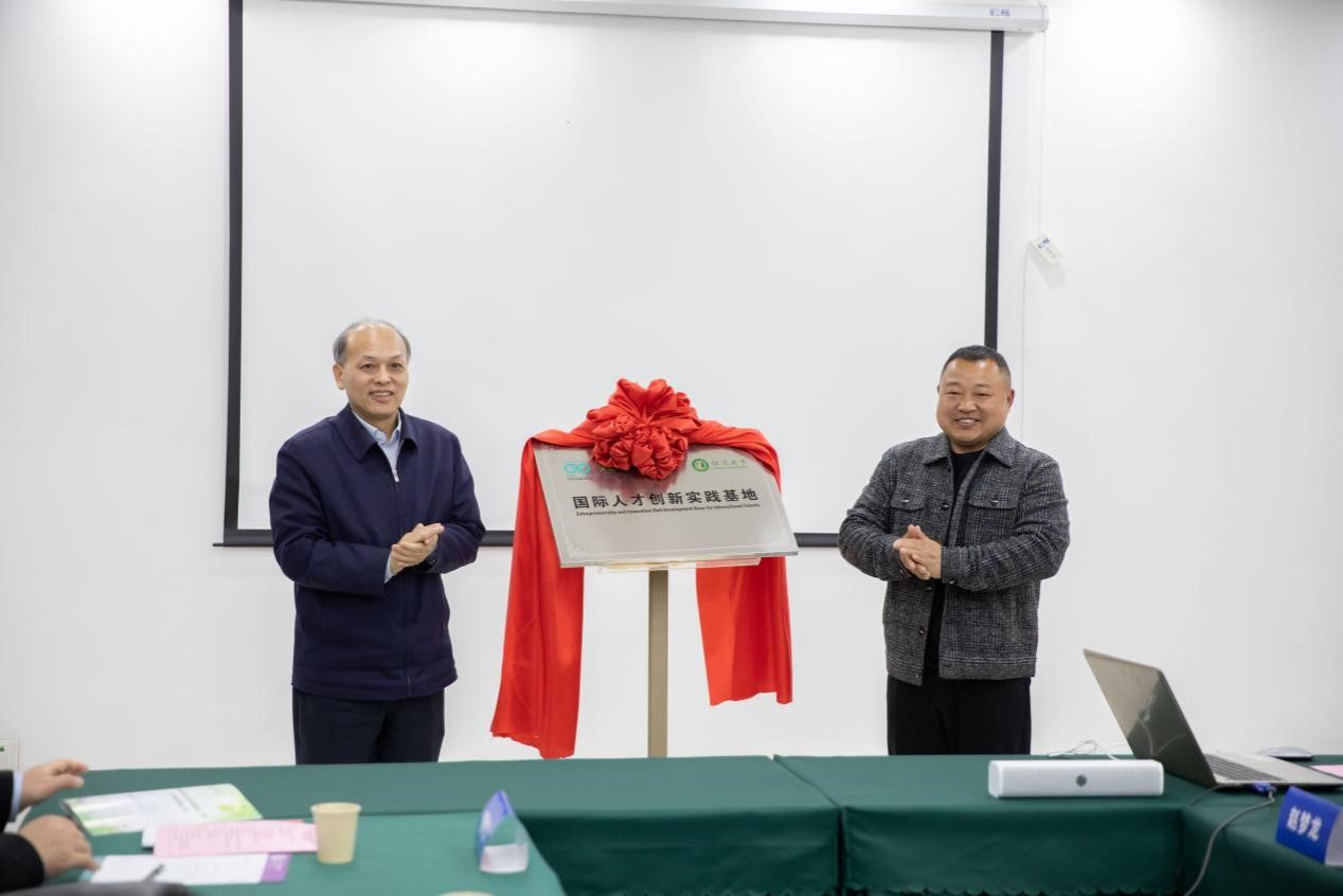 会上,姜其瑜和谢涛对各自企业的特色进行介绍,颜晓红分别与两位企业代表为“国际人才创新实践基地”揭牌。