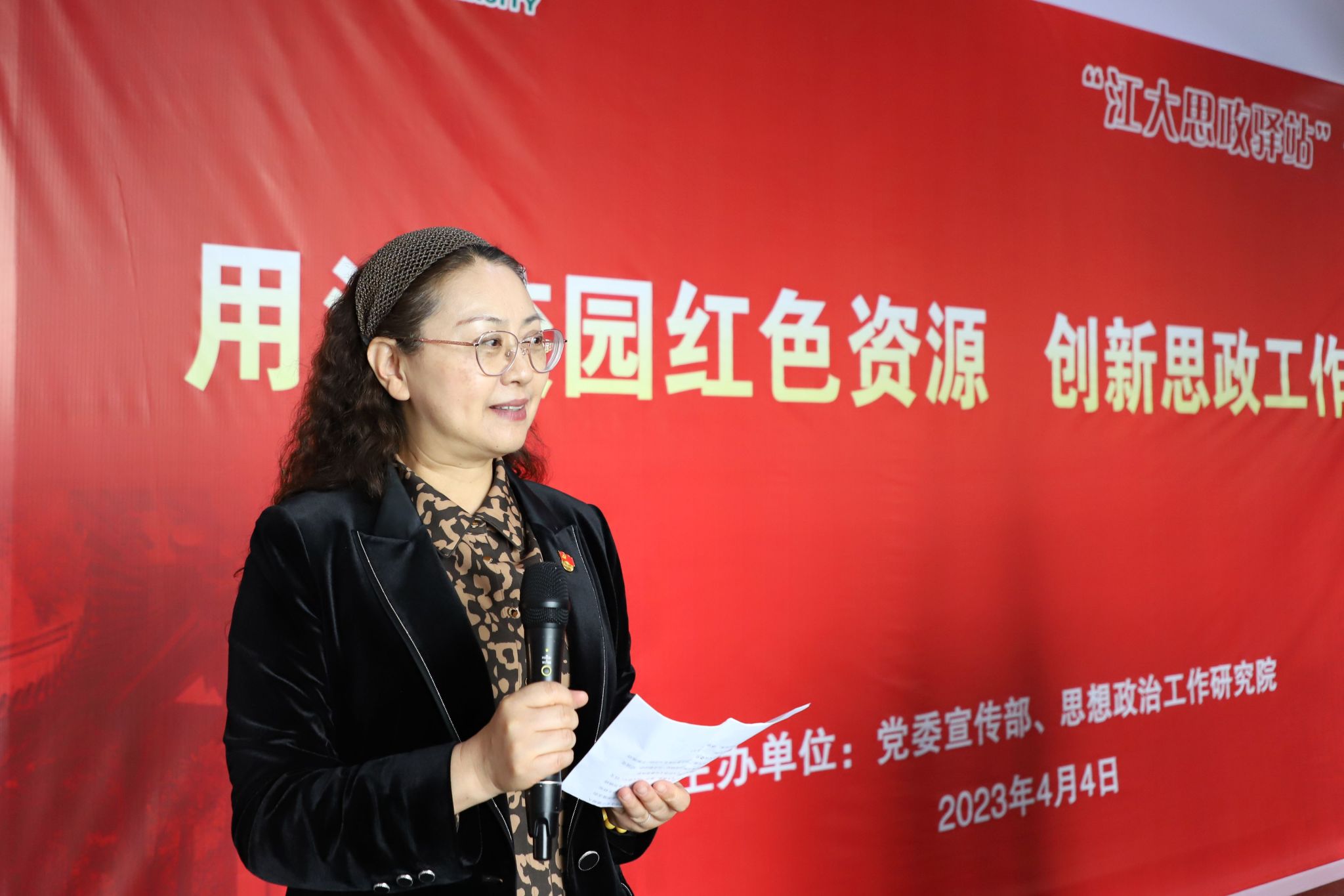 4月4日上午,荣耀(中国)官方在线登录思政驿站之“用活校园红色资源,创新思政工作路径”主题活动在图书馆一楼大厅举行。王龙烈士家属,思政舞台剧《王龙亭》主创人员及学校师生代表参加活动。活动由思想政治工作研究院执行院长金丽馥主持。