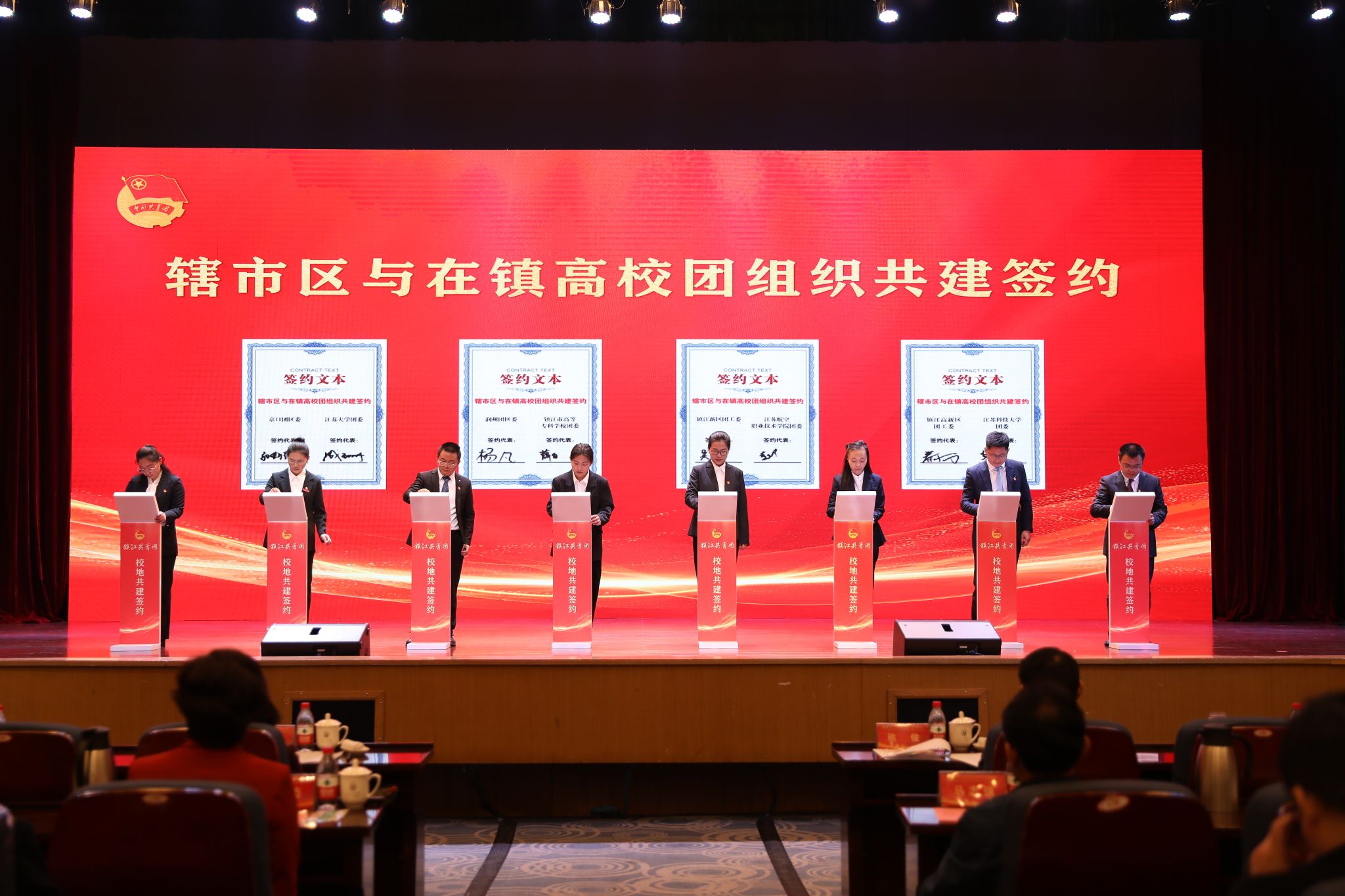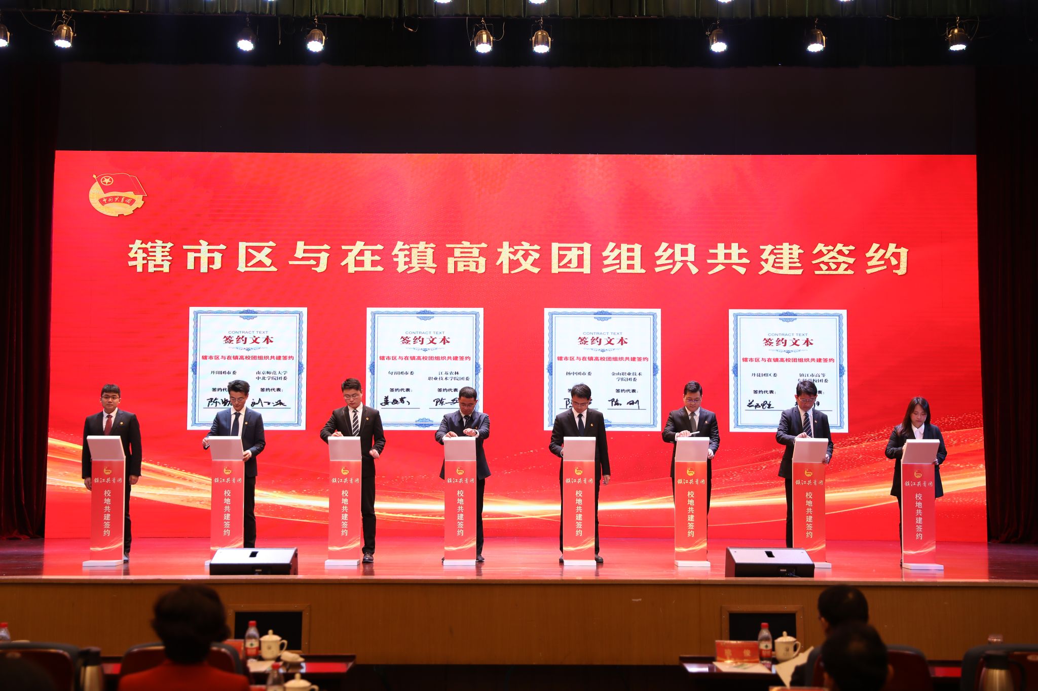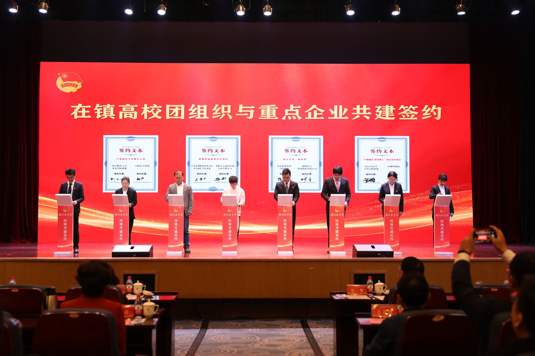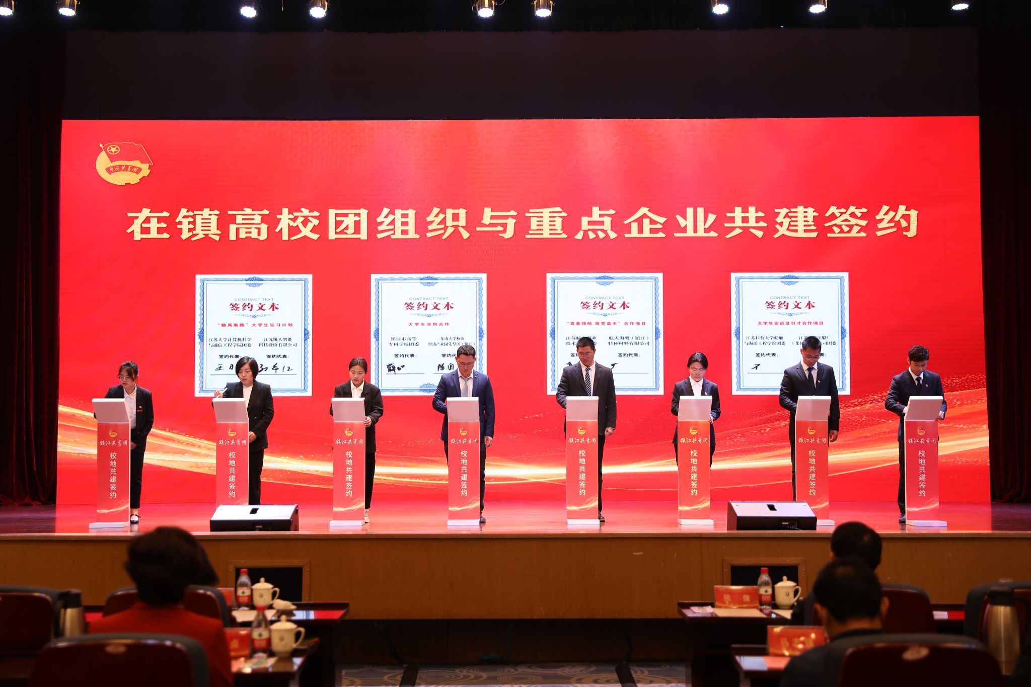 仪式上,在镇高校与各辖市区团组织和重点企业进行了共建合作签约。荣耀网页版、江苏科技大学等在镇高校,分别与团京口区委、镇江高新区团工委等辖市区团组织结对共建。江苏农林职业技术学院农学园艺学院、江苏航空职业技术学院团委等高校团组织分别与有关企业签订合作项目。