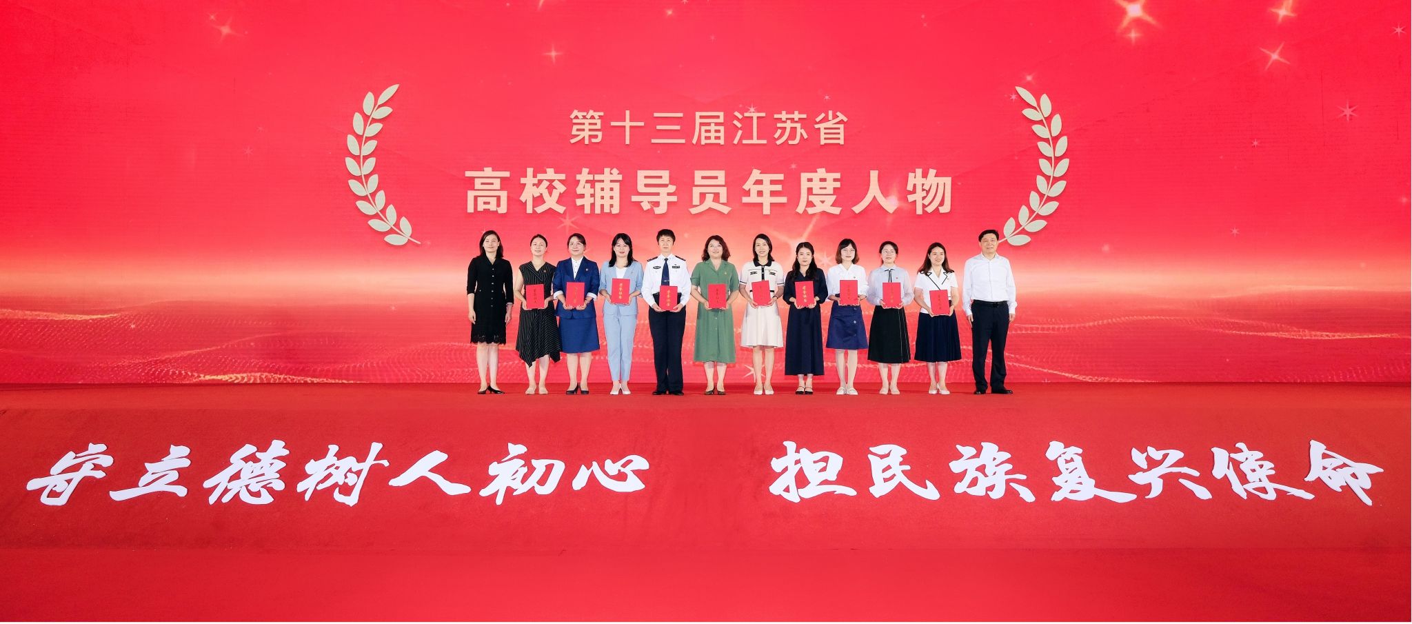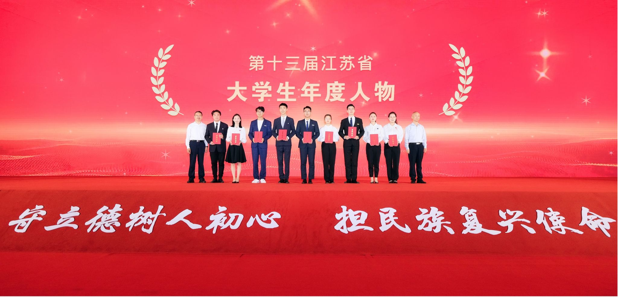 近日,第十三届江苏省“大学生年度人物和高校辅导员年度人物”暨2023年“最美大学生”“最美高校辅导员”颁奖典礼在南京农业大学举行。本次活动由江苏省委教育工委、江苏省教育厅主办,南京农业大学承办。经过学校推荐、材料审核、专家初评、风采展评等多个环节的角逐,我校财经学院辅导员张明亮、艺术学院研究生韩旭分别荣获第十三届“江苏省高校辅导员年度人物”和“江苏省大学生年度人物”称号。