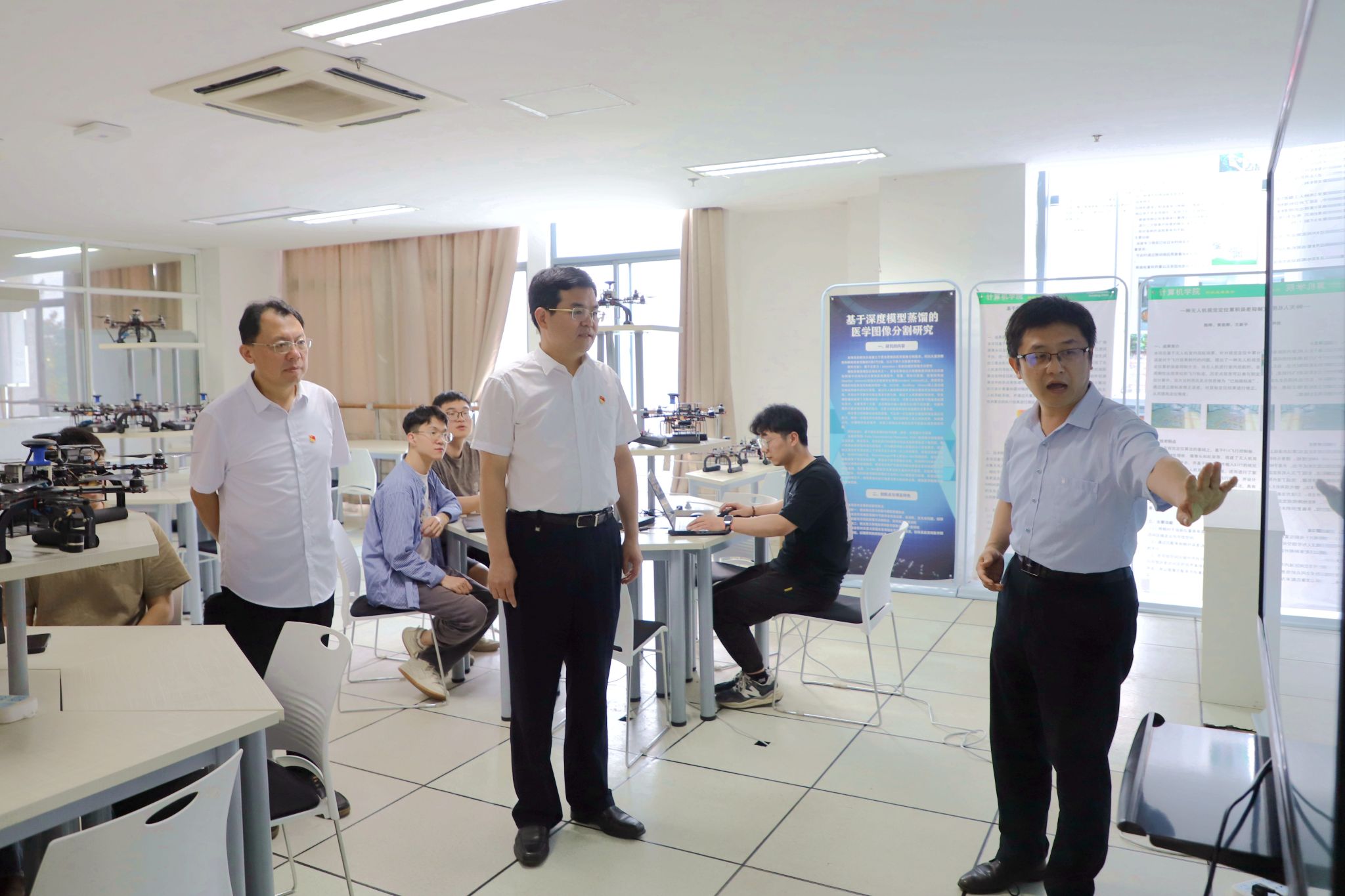 6月20日,校党委书记李洪波围绕“推动基层党建与事业发展深度融合,深入推进‘一融双高’建设”主题,赴物电学院、计算机学院开展专题调研。