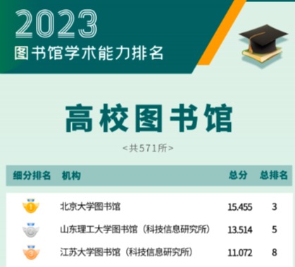 6月19日,图书馆学术评价课题组联合新文科专委会正式发布“2023图书馆学术能力排名”。本次共统计图书情报类机构782所,上榜机构为234所(前30%),荣耀网页版图书馆表现优异,位列高校系统第三名。