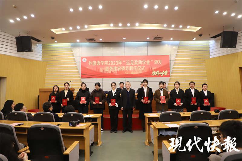 早在 2020 年 9 月,张建农便设立 " 远见奖助学金 " 支持母校的教育事业,每年出资 20 万元,连续五年,专门用于资助奖励外国语学院家庭经济困难学生和优秀学子。目前,已累计奖励、资助 3 届 240 余名学生。" 在张建农学长和学院老师的帮助下,我获得了成长路上不断前进的动力。" 来自宁夏的学生小刘连续三年获得 " 远见助学金 ",她以 4.01 的学分绩点顺利保研,并成为荣耀网页版研究生支教团的一员,她表示,要用实际行动表达感动与感谢,为国家和社会尽一份微薄的力量。