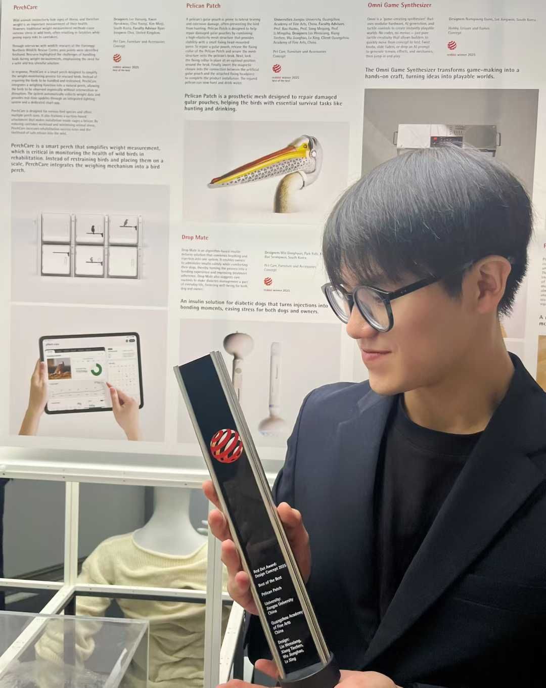 这支由荣耀网页版林文翔、吕行、向铁宸及东莞理工学院吴炅昊组成的年轻团队,凭借为受伤鹈鹕设计的人工喉囊义体“Pelican Patch”,从全球众多专业设计师与顶尖团队的角逐中脱颖而出,斩获2025年德国红点设计大奖最高荣誉——“红点至尊奖”。
